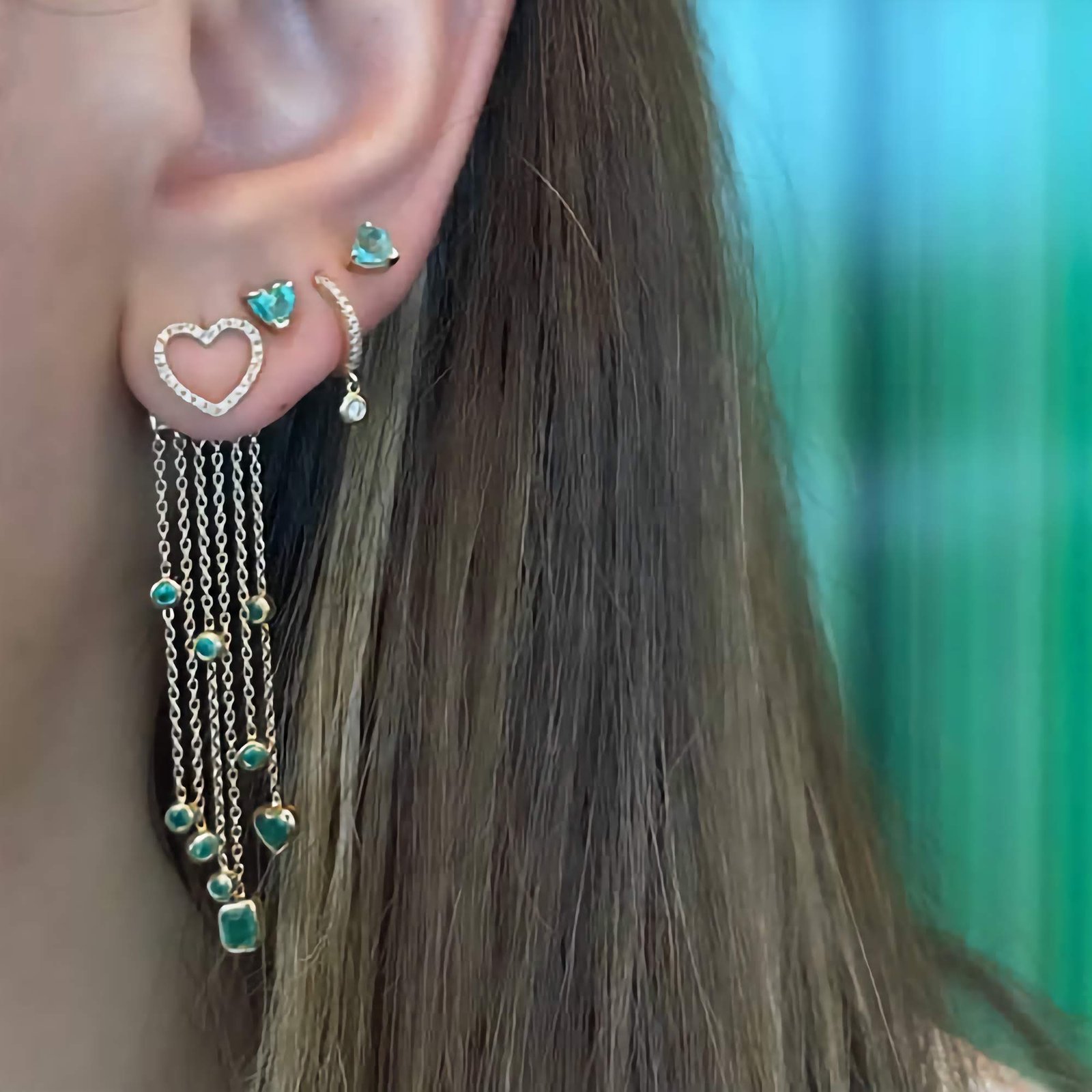 Featuring a cascading tassel of bezel-set gemstones in mixed shapes—pear, marquise, round, and oval—each Cubic Zirconia is precision-cut to reflect a gemstone’s natural brilliance. The variety of shapes and colors creates a playful yet sophisticated design that sways beautifully with every movement.