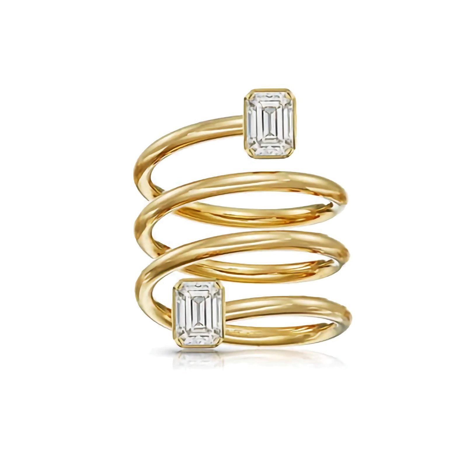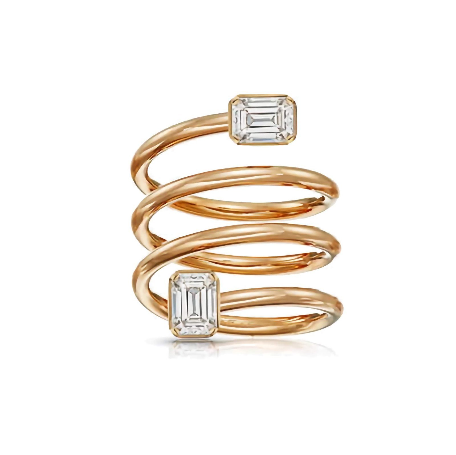 925 silver spiral ring with sparkling Cubic Zirconia, plated in 14K gold or rose gold. Hypoallergenic, nickel-free, and strikingly elegant.