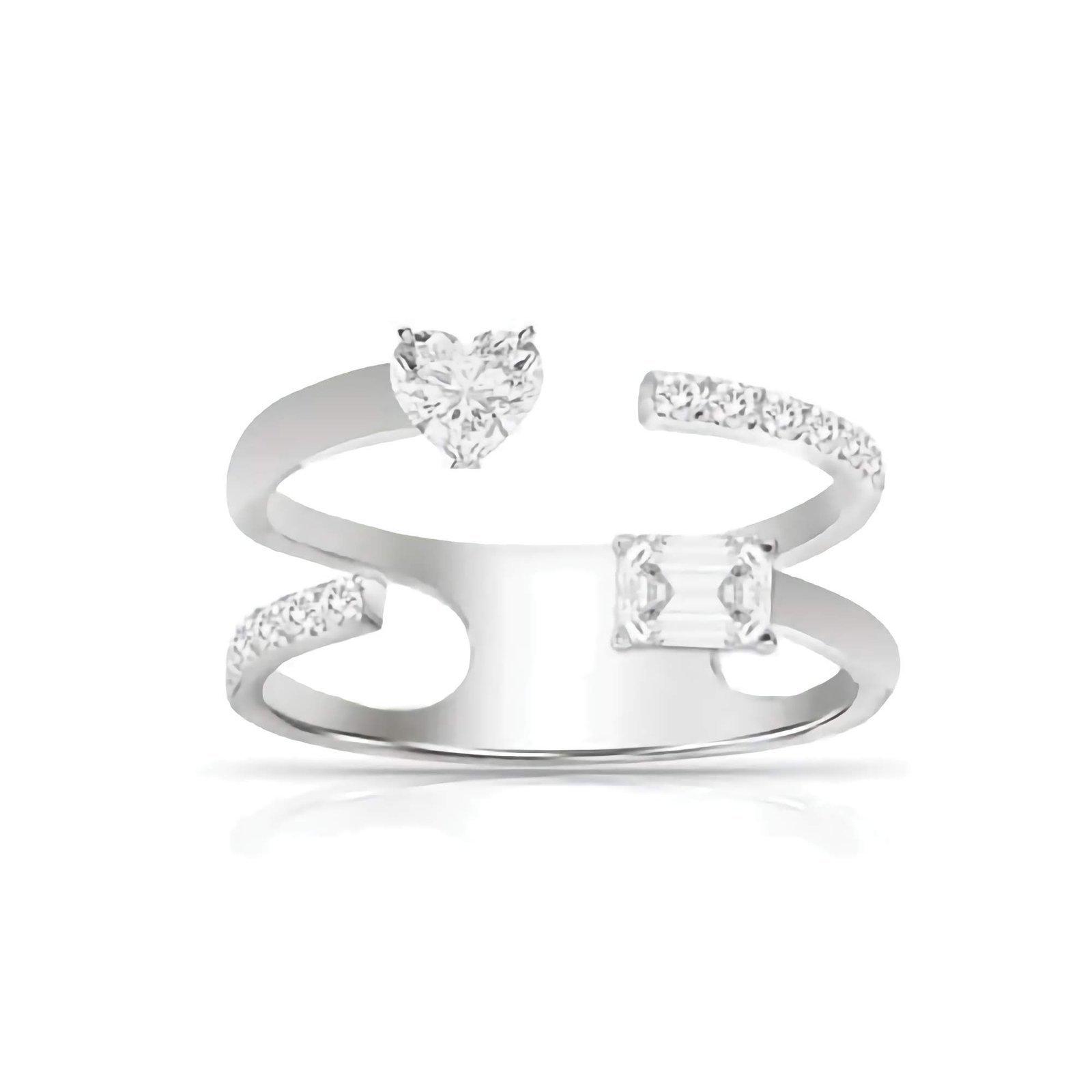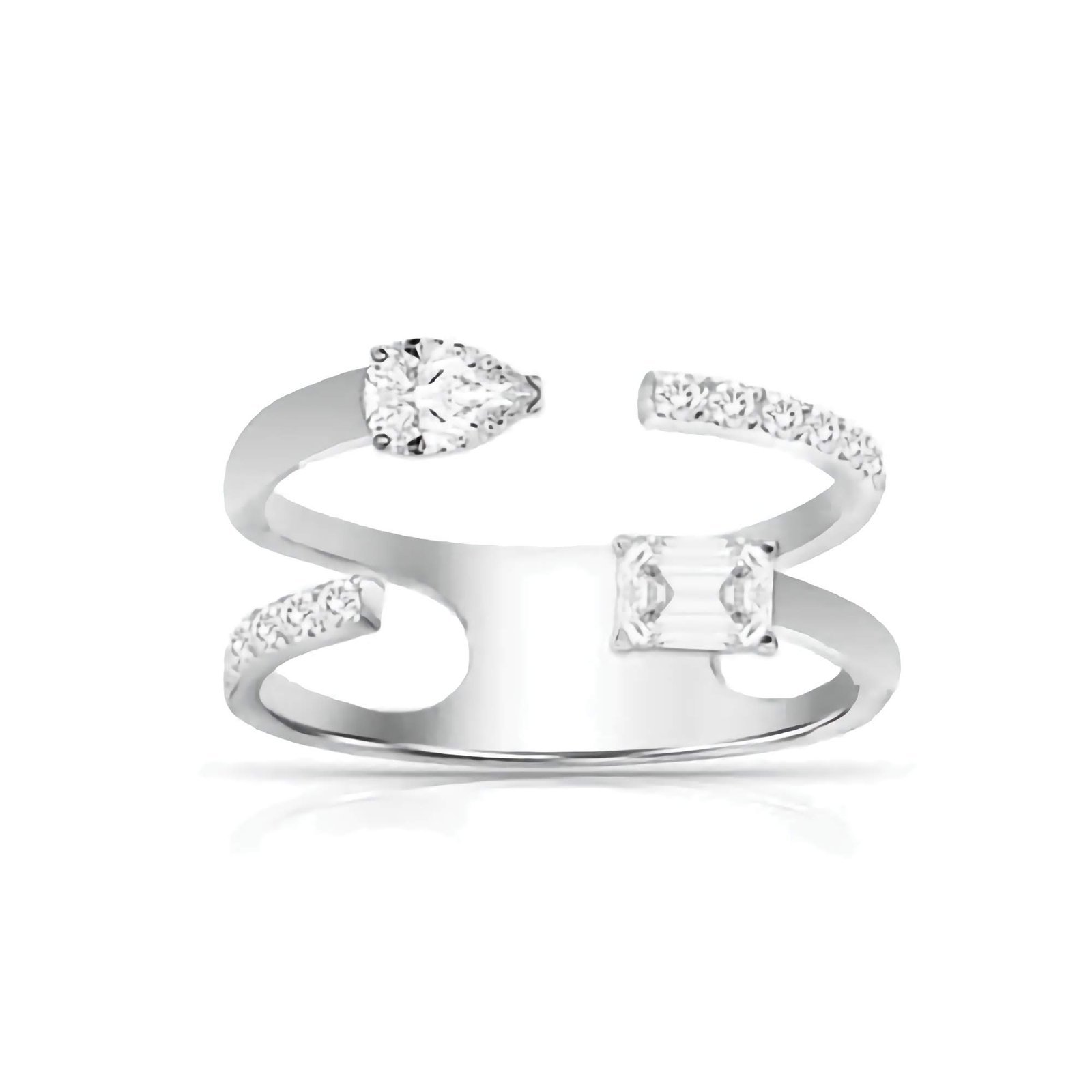 925 Silver Multi-shape Double Row Diamond Statement Ring