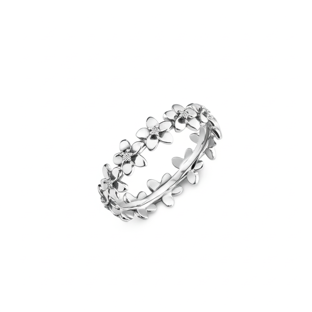 Whether worn solo or stacked with other favorites, the Tiny Plumeria Eternity Ring adds a soft, graceful sparkle to any outfit—elevating your style with ease and beauty.