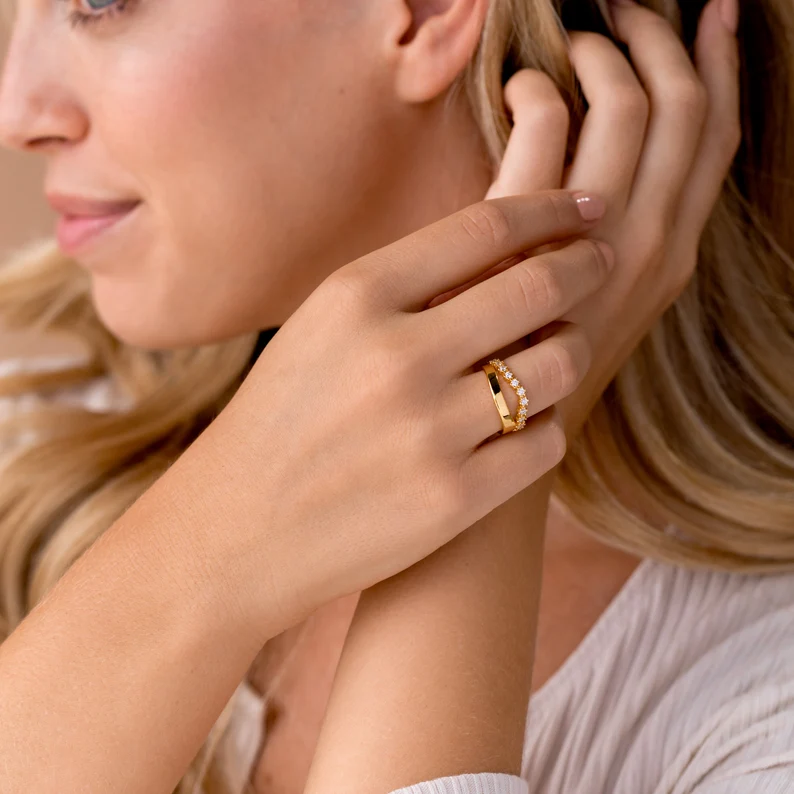 Each wave is adorned with highest-grade Cubic Zirconia stones, offering a radiant, diamond-like sparkle that adds movement and brilliance to the design. Thoughtfully made to be nickel-free and hypoallergenic, it guarantees a comfortable fit, perfect for sensitive skin. Whether worn as a chic standalone piece or paired with other rings for a layered effect, the Noemi Diamond Wave Duo Ring brings effortless elegance to any outfit.