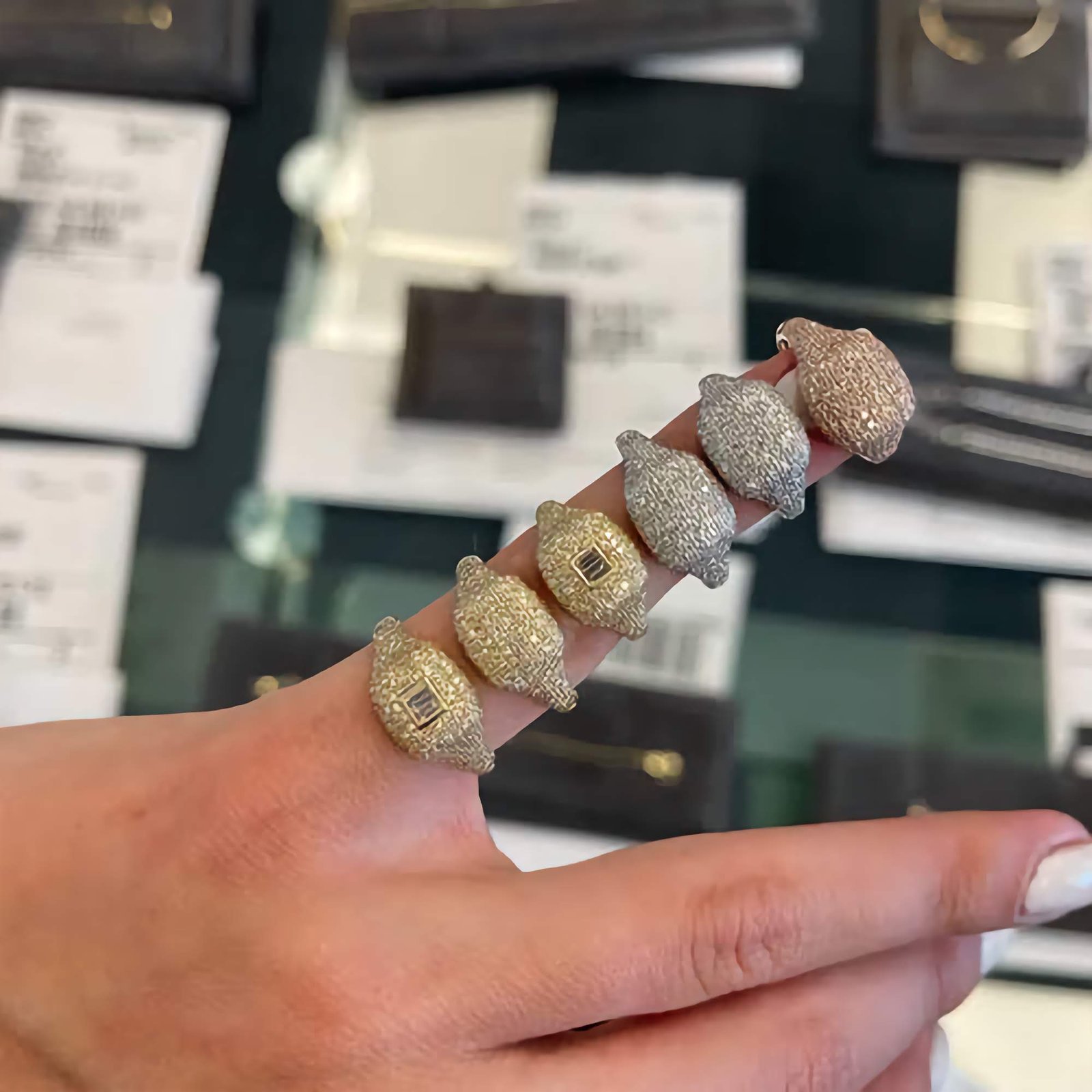 The ring is an eye catcher. Arrived as promised. Nice quality.