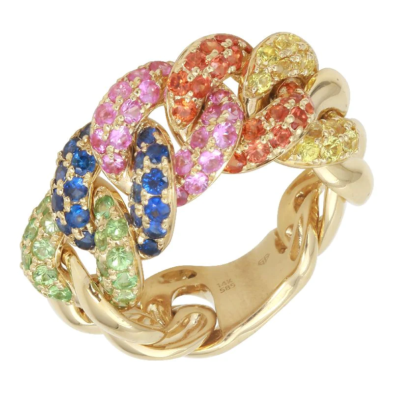 Accented with highest-grade Cubic Zirconia stones, the Rainbow Link Ring sparkles with a radiant, diamond-like finish, bringing a lively and luxurious touch to your everyday or occasion wear. Carefully crafted to be nickel-free and hypoallergenic, it ensures a smooth, irritation-free fit, making it perfect even for sensitive skin. Whether styled alone for a bold statement or stacked with other rings for a layered, colorful look, this piece is sure to stand out.