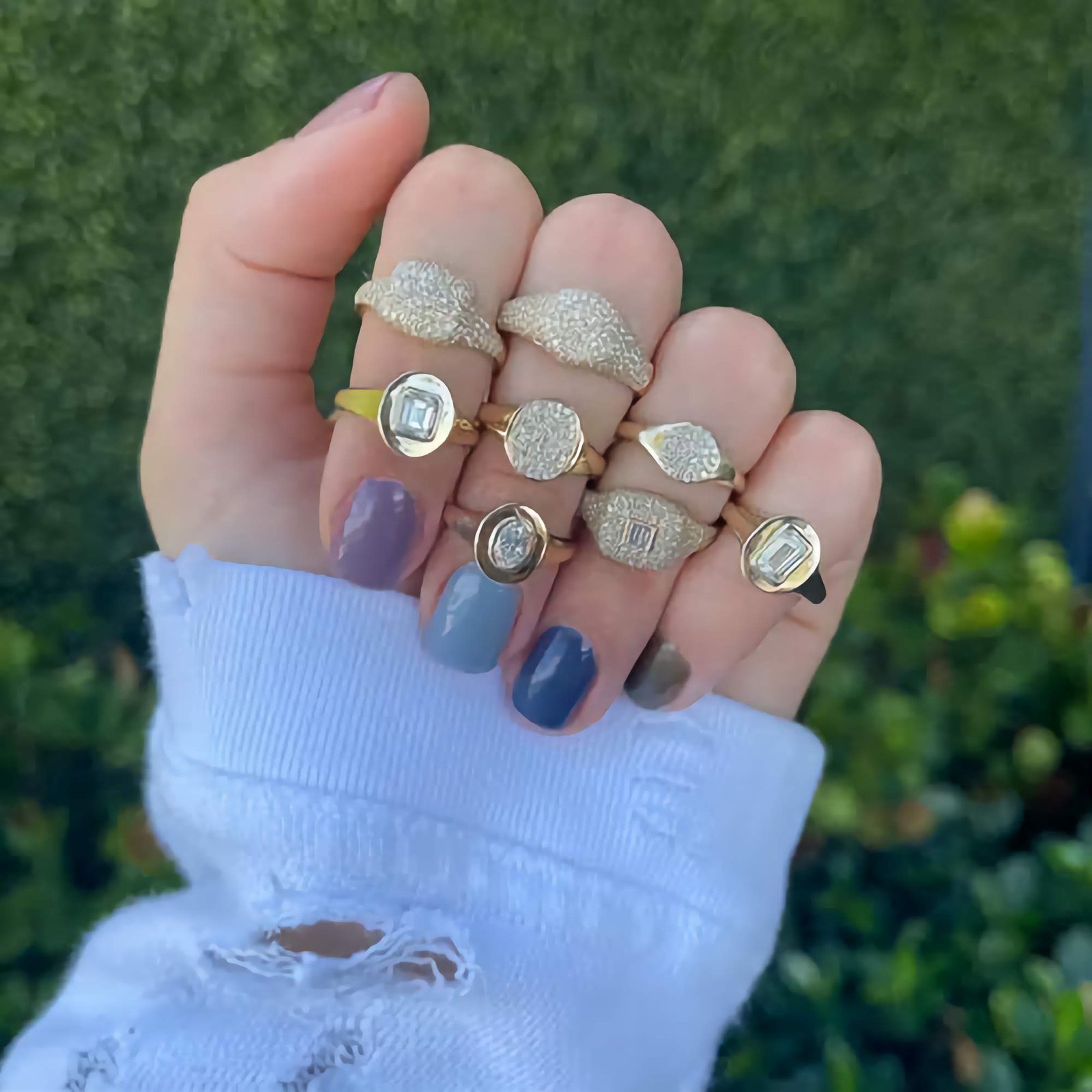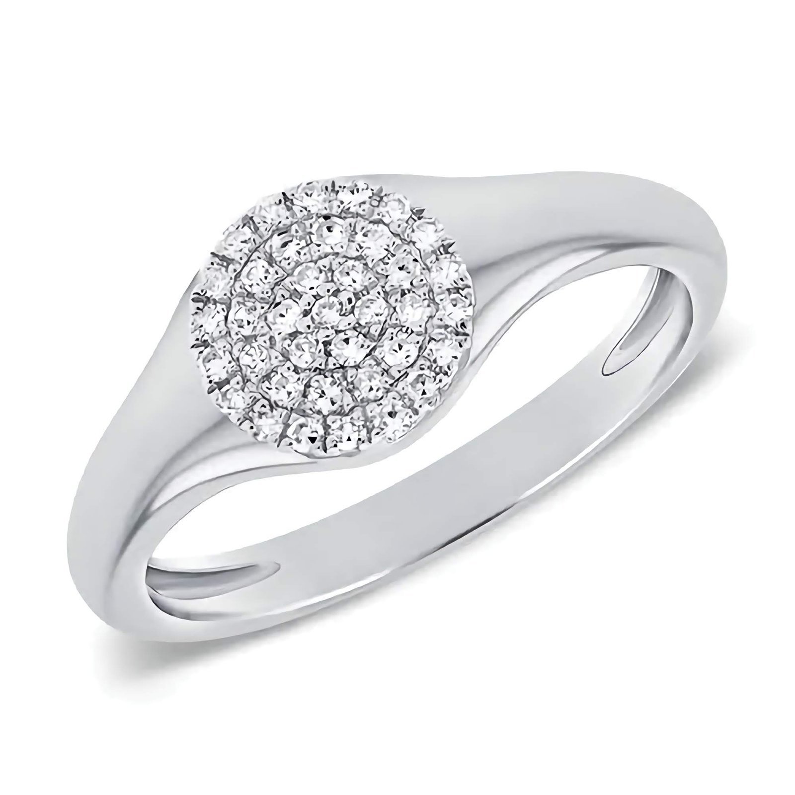 925 Sterling Silver round signet ring with subtle CZ sparkle and 14K Gold or Rose Gold plating. Classic, minimal, and hypoallergenic.