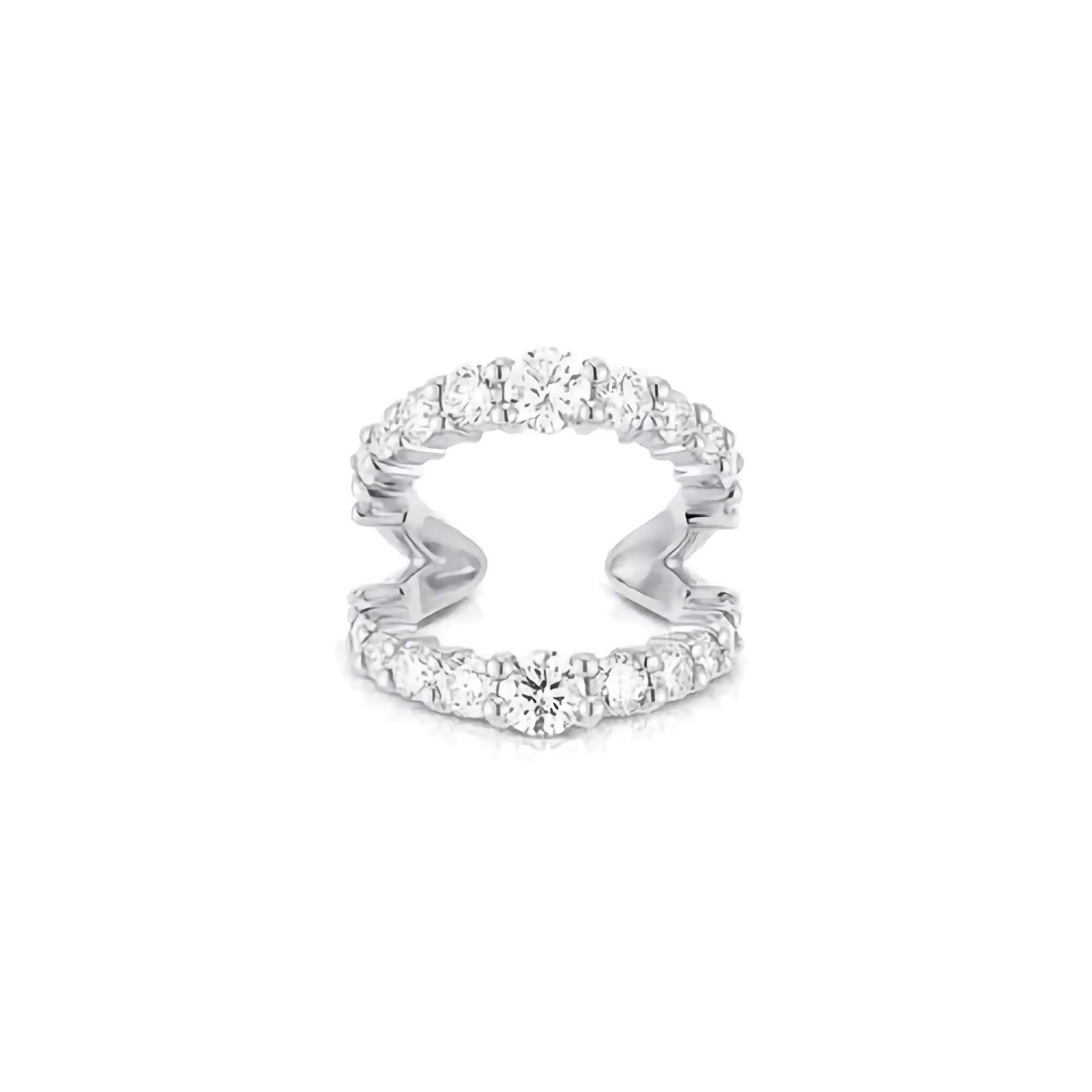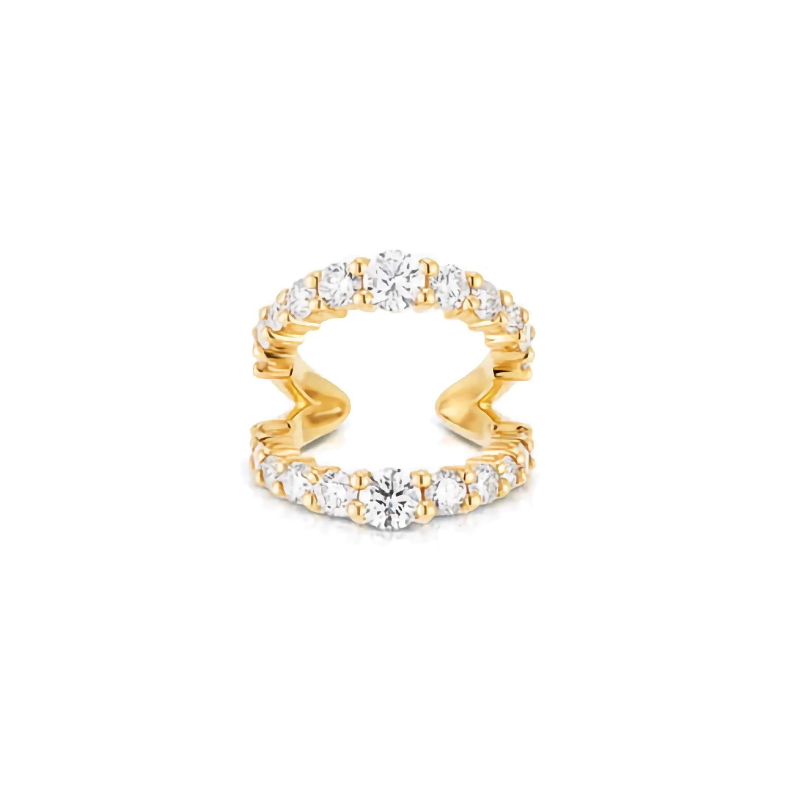 Designed with a sleek split structure, the cuff wraps gracefully around the ear, giving the illusion of multiple piercings in a single piece. Encrusted with highest-grade Cubic Zirconia, it sparkles with a diamond-like brilliance—perfect for adding just the right amount of glam to your look. No piercing is required, making it an easy, versatile piece to mix and match with studs, huggies, or dangles.