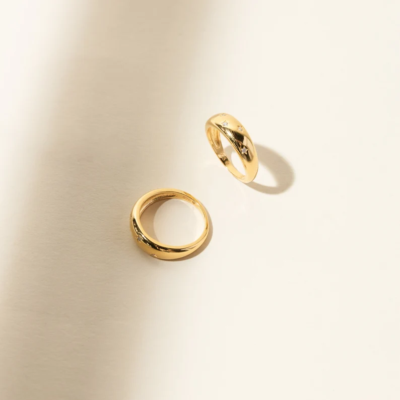 Adding to its brilliance, highest-grade Cubic Zirconia stones sparkle like distant stars, creating a diamond-like glow that lights up your every move. Thoughtfully designed to be nickel-free and hypoallergenic, this ring promises a comfortable, irritation-free experience, perfect even for sensitive skin. Whether worn solo as a statement piece or layered with other favorites, the Star Dome Ring adds a magical touch to any outfit.