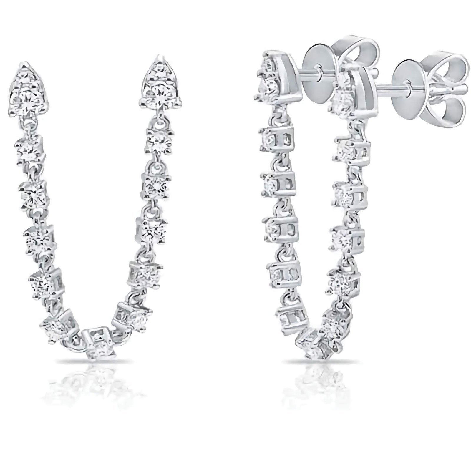 Featuring two elongated segments linked together in a fluid drop design, this earring is adorned with highest-grade Cubic Zirconia that sparkle with diamond-like brilliance. The linear silhouette adds drama and movement, making it a striking accessory for evening occasions, formal events, or when you simply want to turn heads.