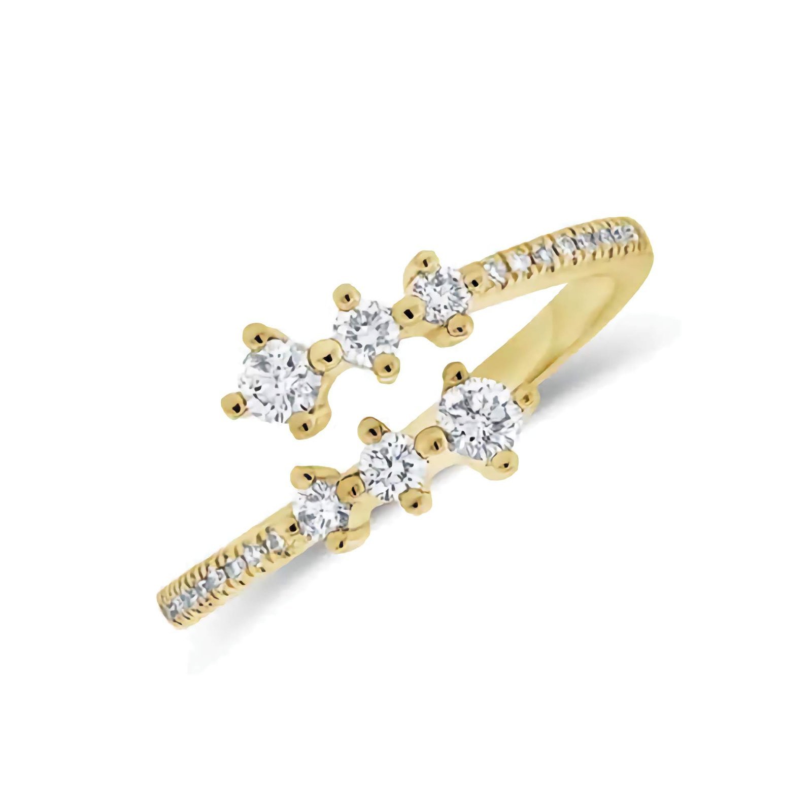 925 silver open wrap ring with CZ accents, plated in 14K gold or rose gold. Hypoallergenic, nickel-free, and perfect for a flowing, modern look.