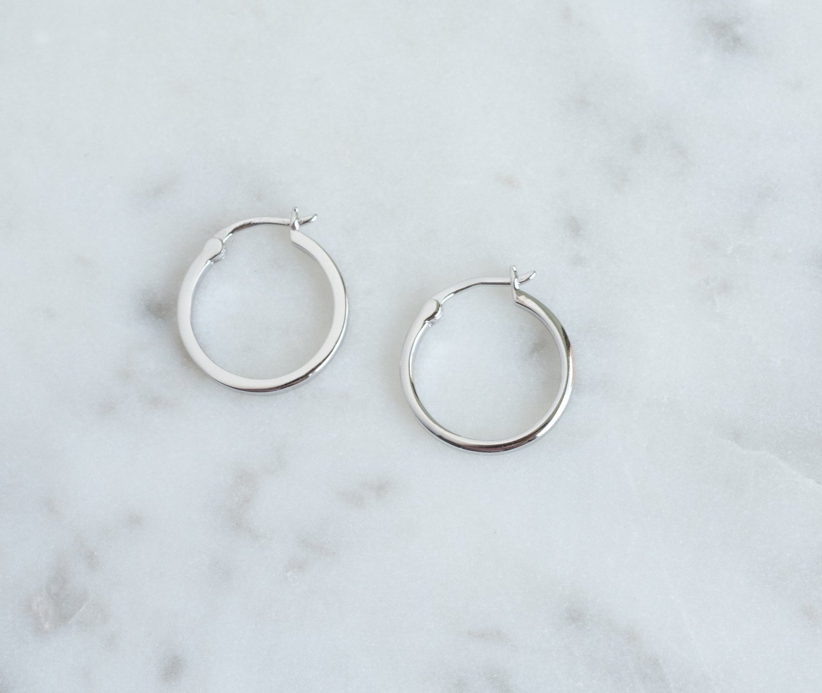 925 Silver flat hoops with 14K gold or rose gold plating, available in 8mm, 13mm, and 18mm. Lightweight, hypoallergenic, and dainty. Ships in 7–8 days.