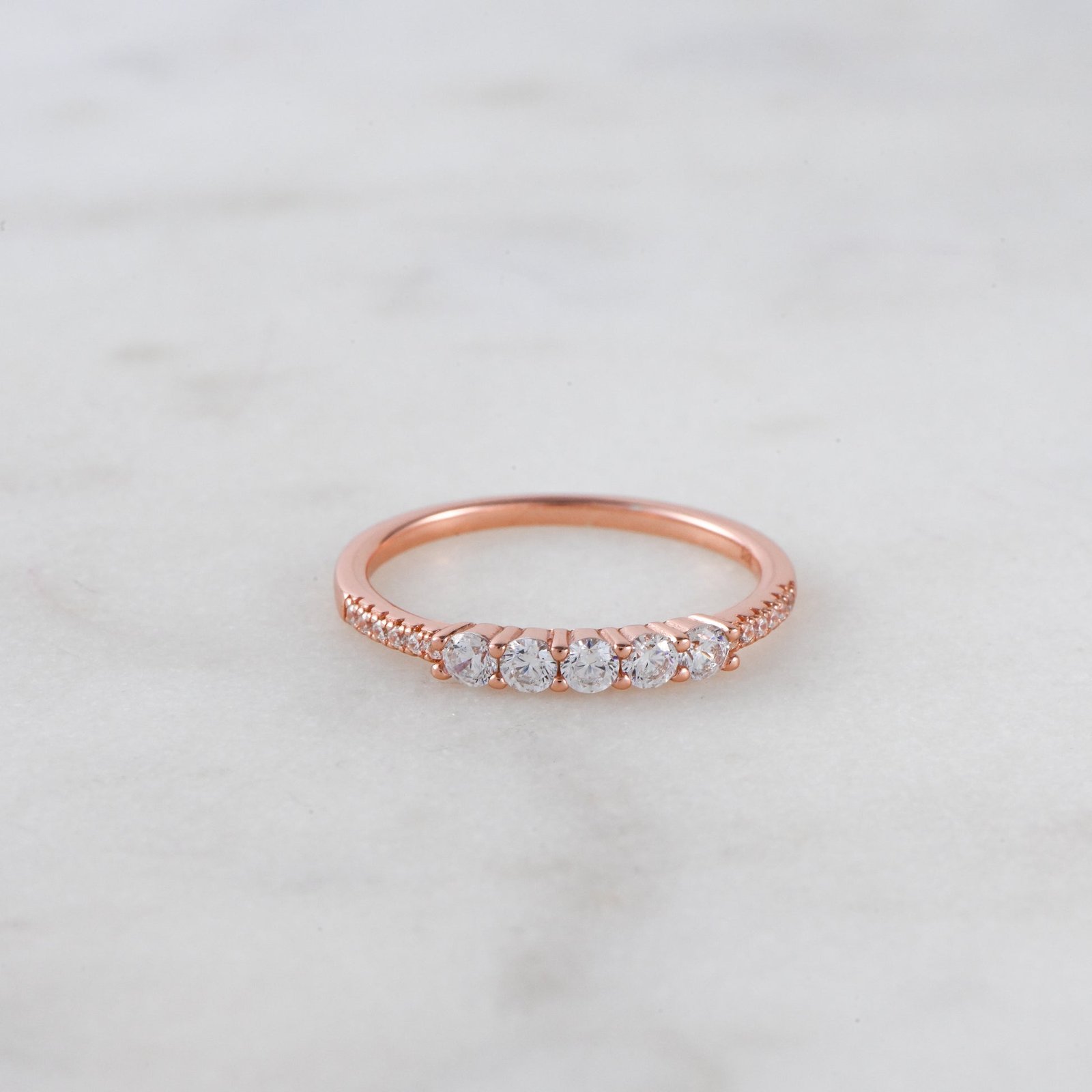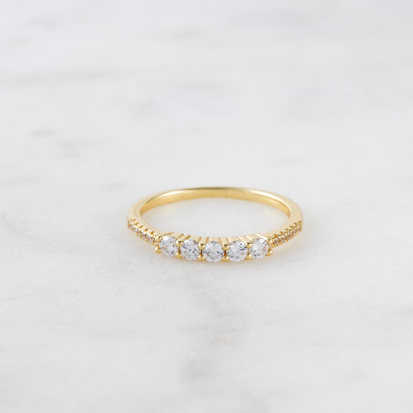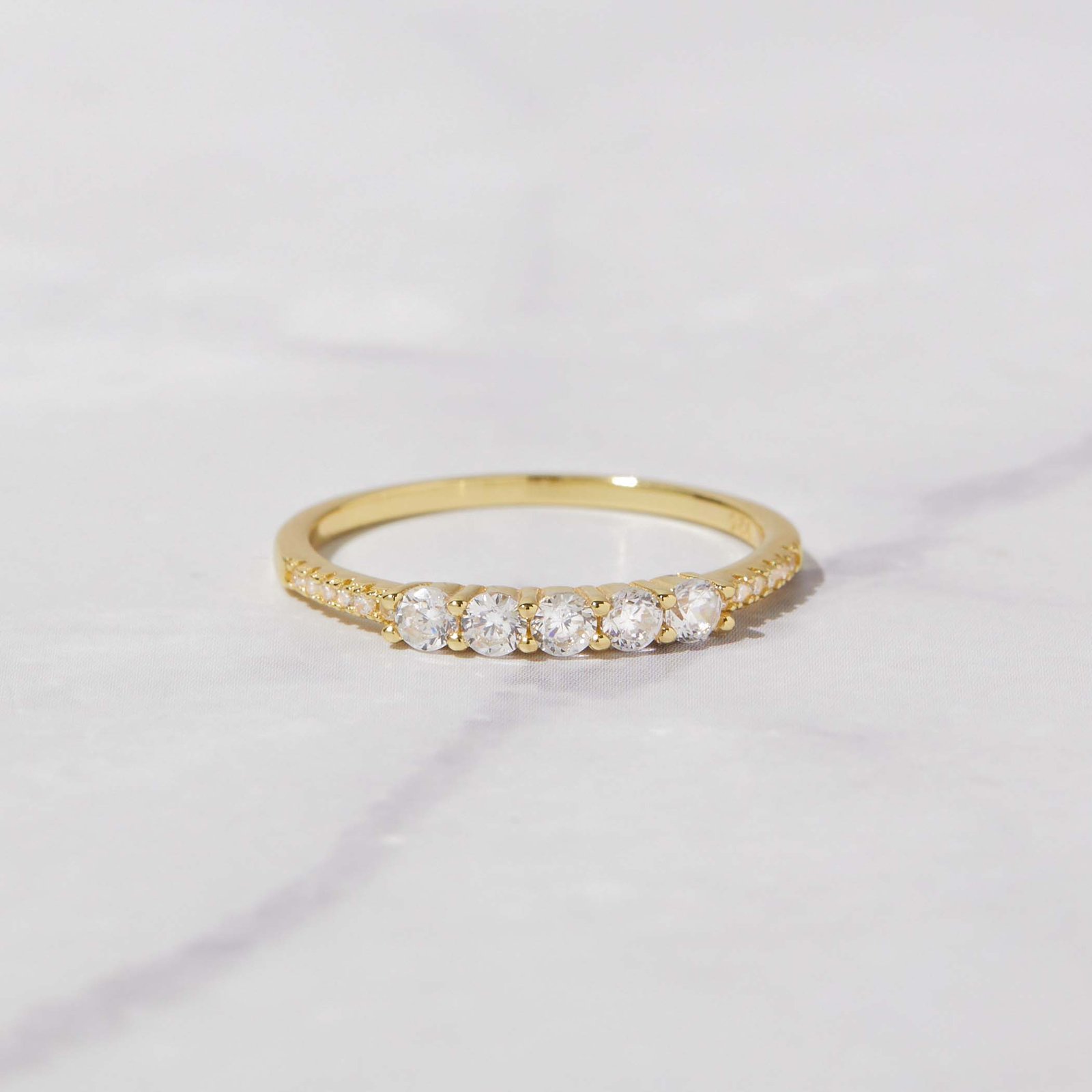 925 silver 5 stone CZ ring with pavé details and thick 14k gold or rose gold plating. Hypoallergenic, stackable, and also available in turquoise and opal.
