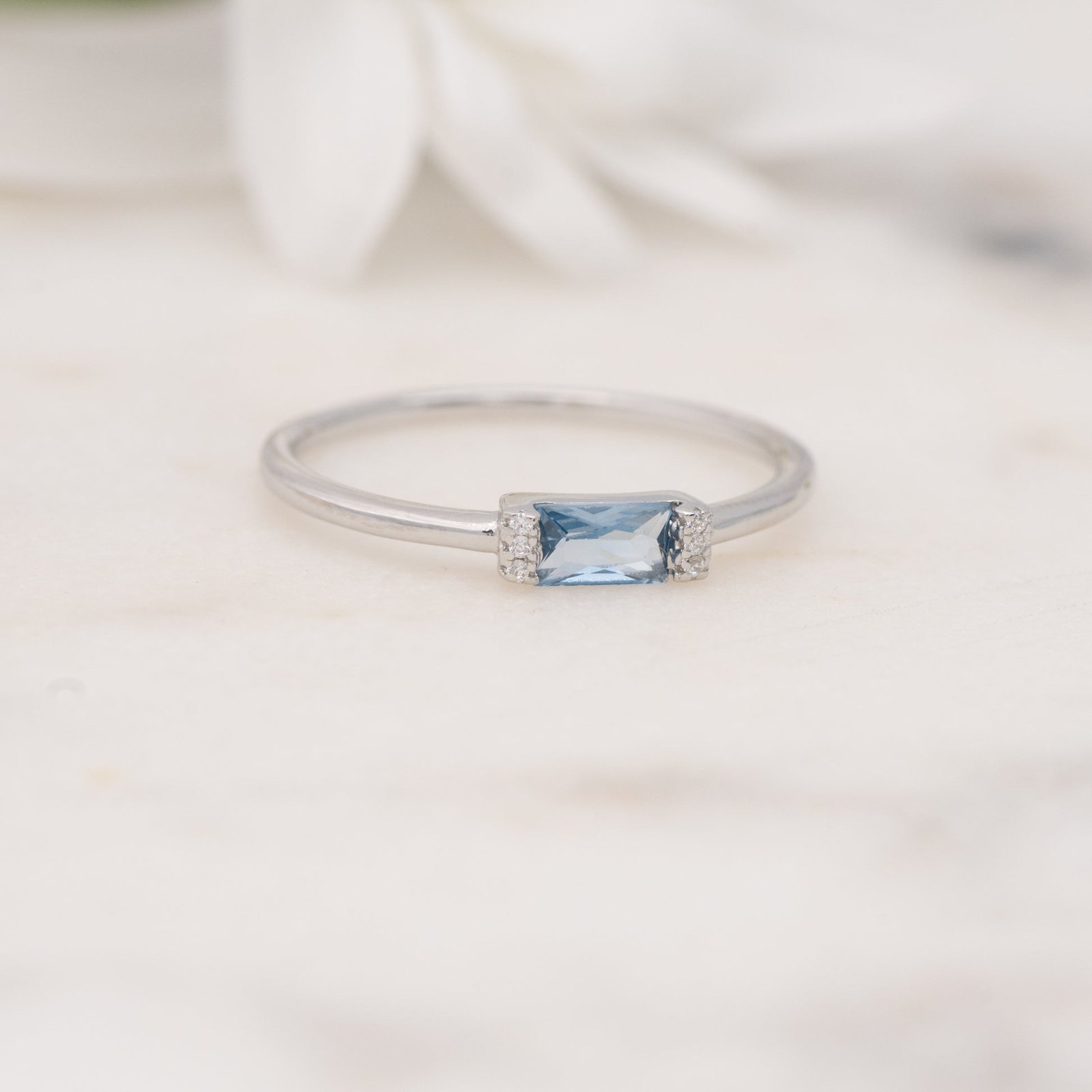925 Silver Aquamarine Baguette Ring