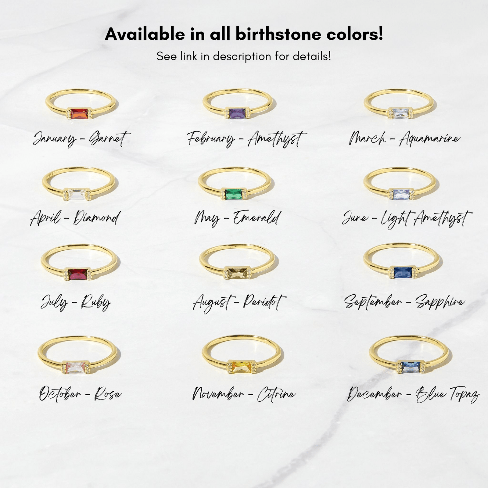 - Also available in all Birthstone colors