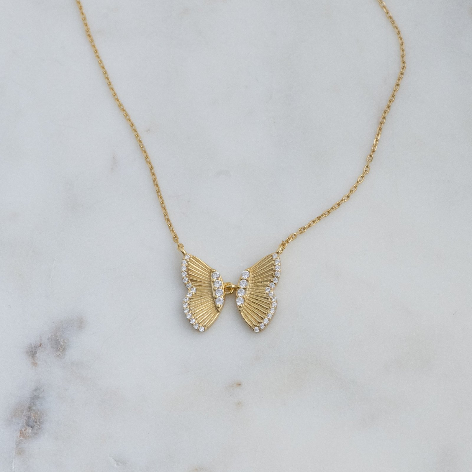 Whether worn solo or paired with a matching ring, the Butterfly Necklace is a statement piece that effortlessly adds a touch of elegance to any outfit, while representing growth and transformation.