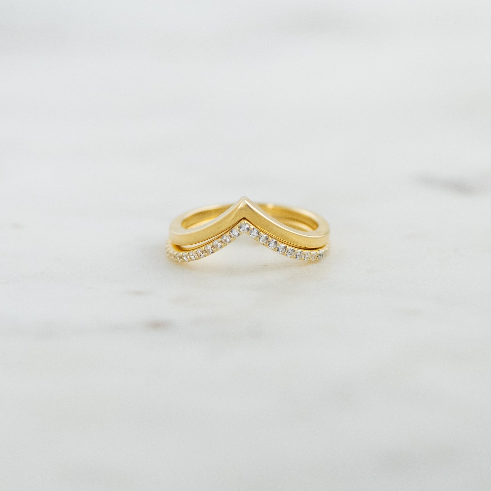 925 silver chevron ring set with pavé and plain bands, 3mm stacked height, thick 14k gold plating. Hypoallergenic, versatile, and perfect for stacking.