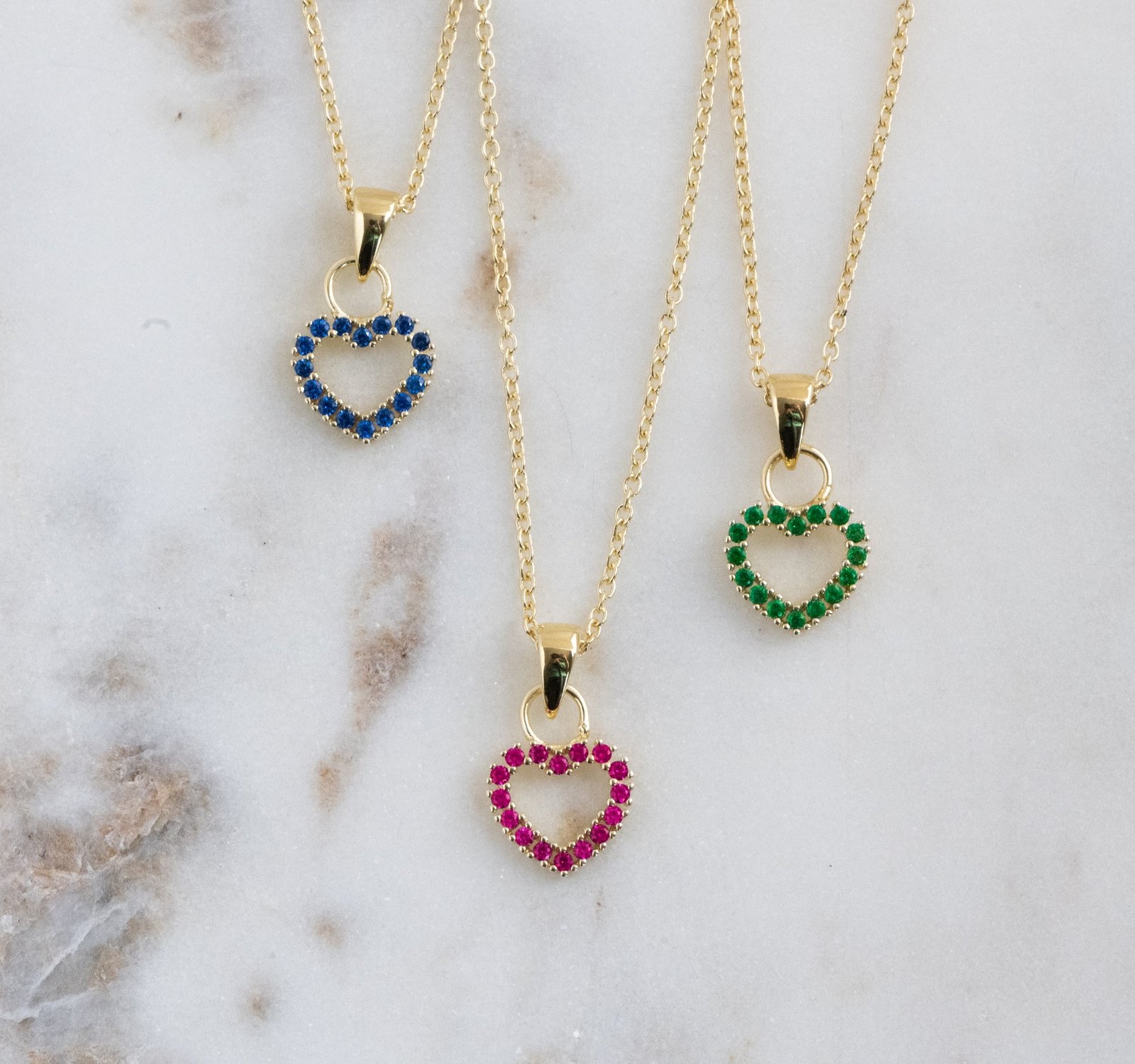 Dainty emerald heart necklace in 925 silver with 14k gold or rose gold plating. Hypoallergenic, adjustable, and perfect for gifting or daily wear.