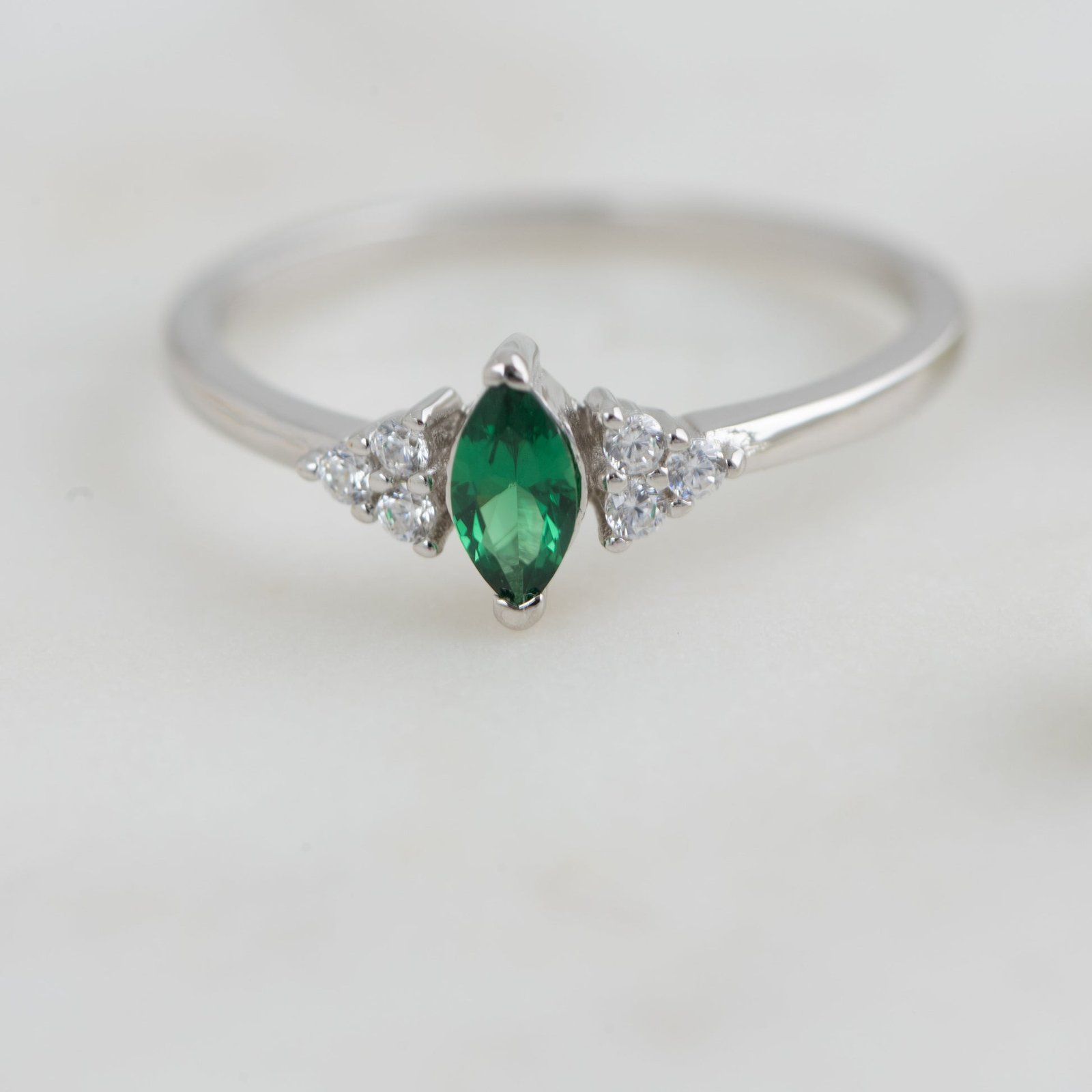 925 Silver Emerald Marquise Ring