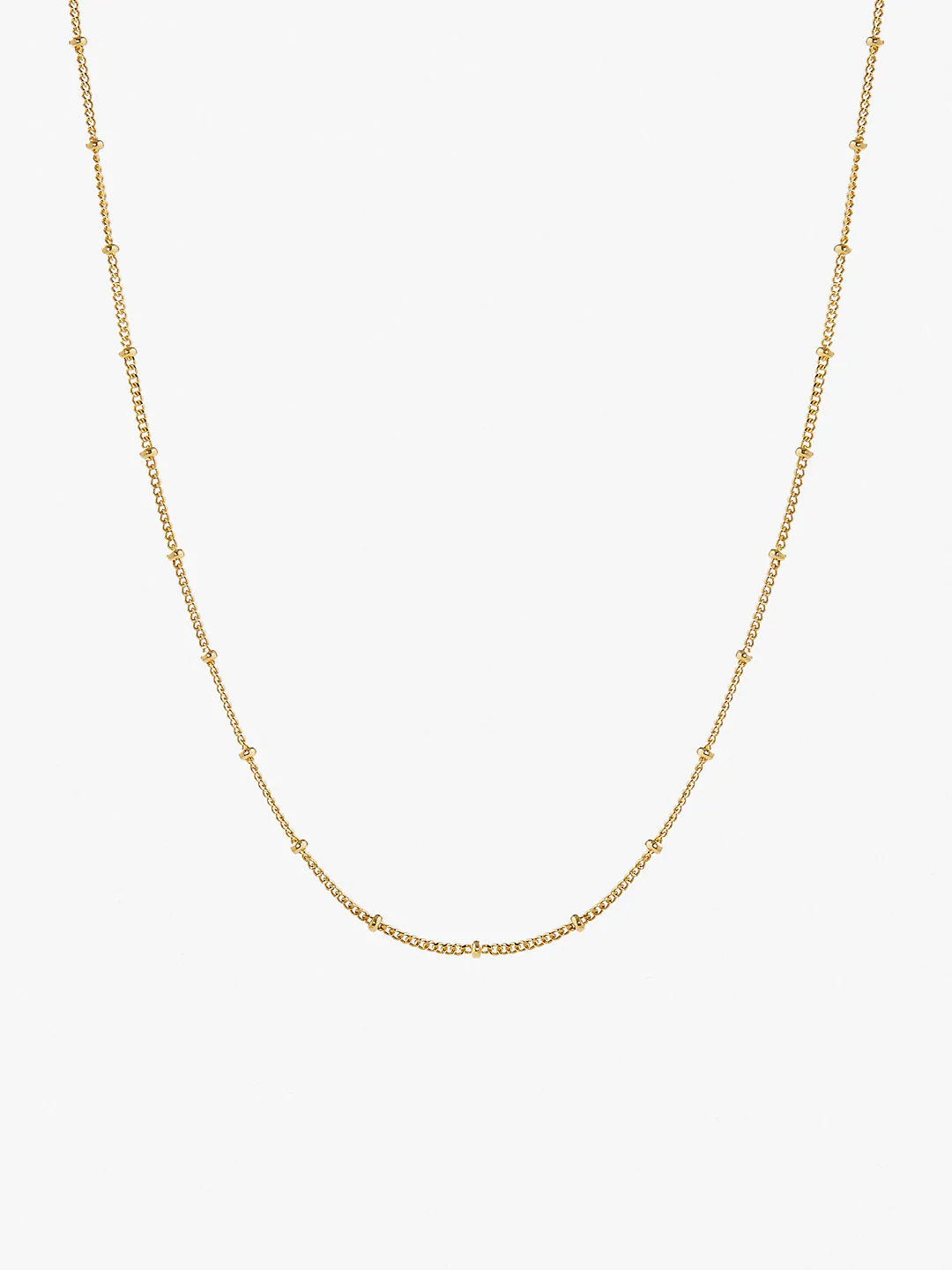 925 silver bead necklace with a sleek polished finish. Plated in 14K gold or rose gold. Hypoallergenic, nickel-free. Ships in 7–8 business days.