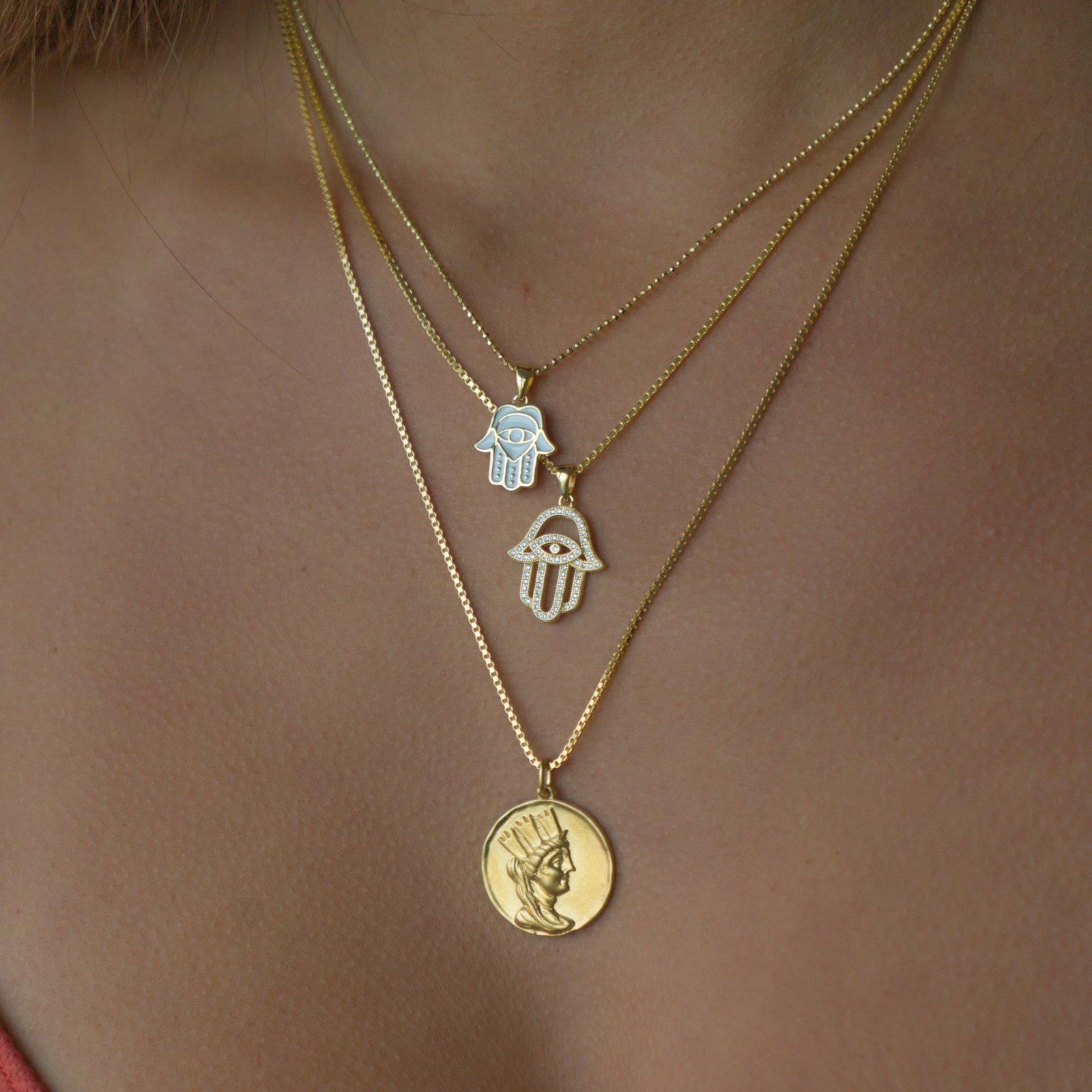 Made from premium 925 sterling silver and coated with a thick, durable layer of 14k gold or rose gold plating, this necklace is built to last while maintaining a radiant, high-shine finish. The Hamsa charm measures 3/4″, making it perfectly sized to stand out without overpowering your look. It’s accented with the highest grade cubic zirconia stones, offering a sparkling, diamond-like brilliance that catches the light from every angle.