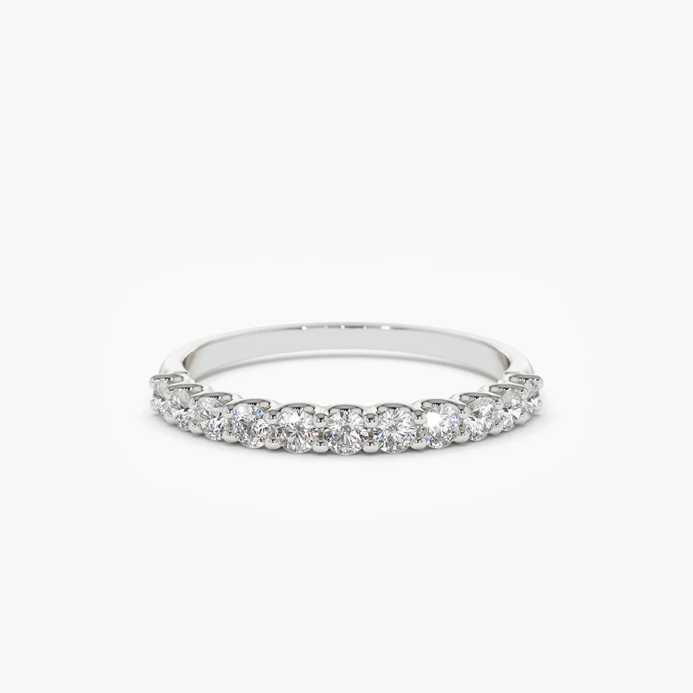 The standout feature of this ring is its graceful U-shaped setting, showcasing eleven brilliant, diamond-like cubic zirconia stones in a flowing curve. Each stone is hand-set to perfection, creating a stunning line of sparkle that catches the light from every angle. Whether worn as a wedding band, anniversary piece, or a meaningful gift, this ring is the perfect blend of modern elegance and timeless beauty.