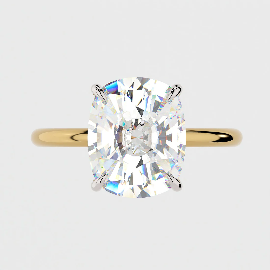 925 silver ring with 4.55Ct cushion-cut CZ, finished in 14K gold or rose gold. Hypoallergenic, nickel-free, and effortlessly romantic.
