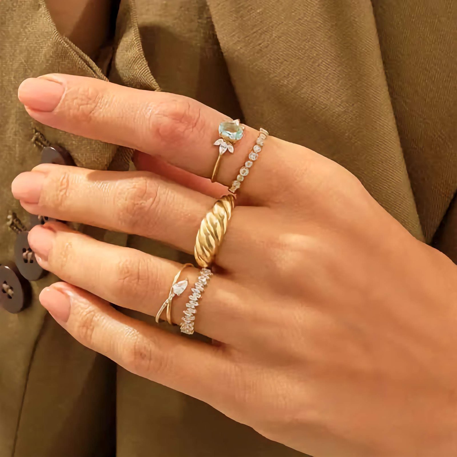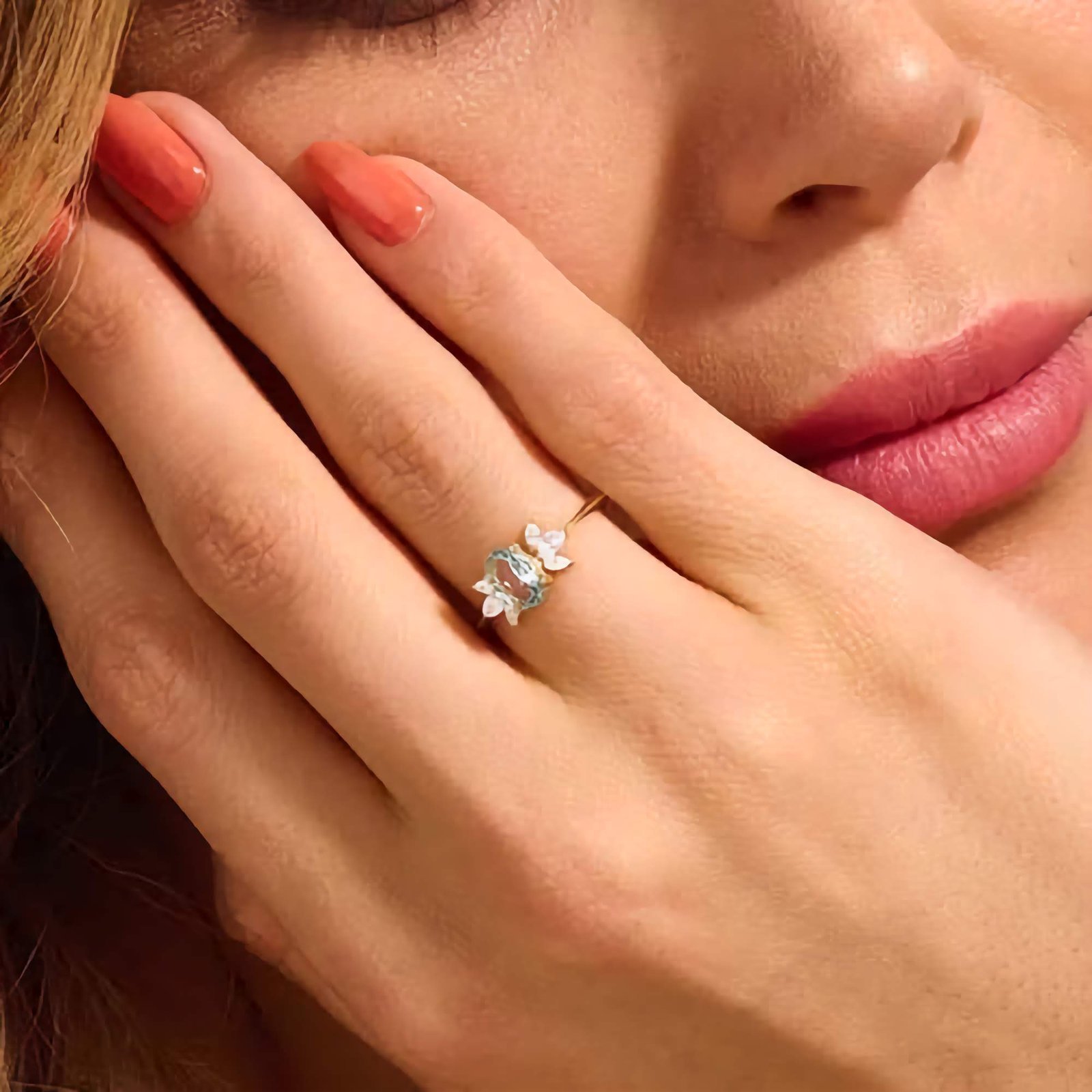 Nickel-free and hypoallergenic, the Aquamarine Flower Ring is safe for sensitive skin and designed for all-day comfort. Whether worn solo or stacked with other delicate pieces, this floral-inspired ring adds a graceful and refreshing touch to any jewelry collection.