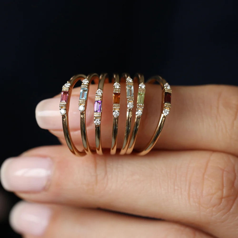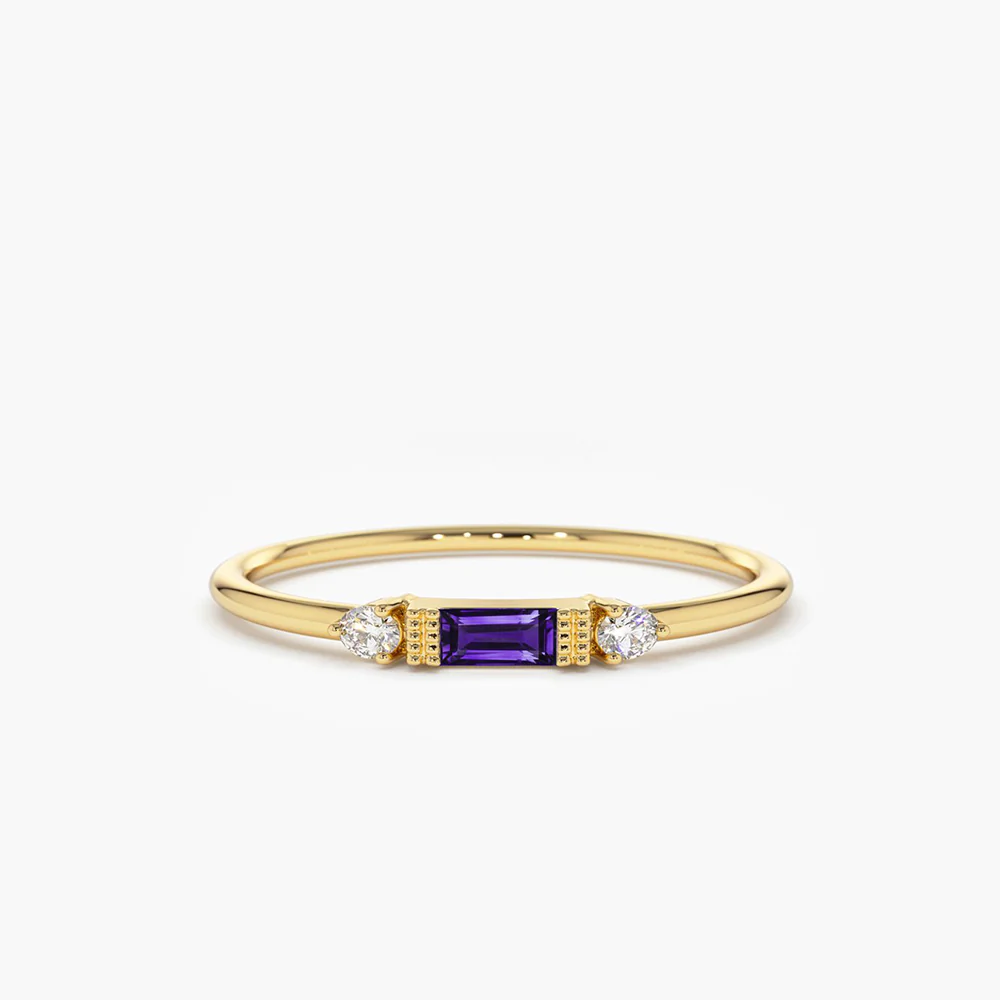925 sterling silver amethyst with diamond ring featuring sparkling cubic zirconia. Finished with thick 14K gold or rose gold plating. Hypoallergenic. Ships in 7–8 business days.