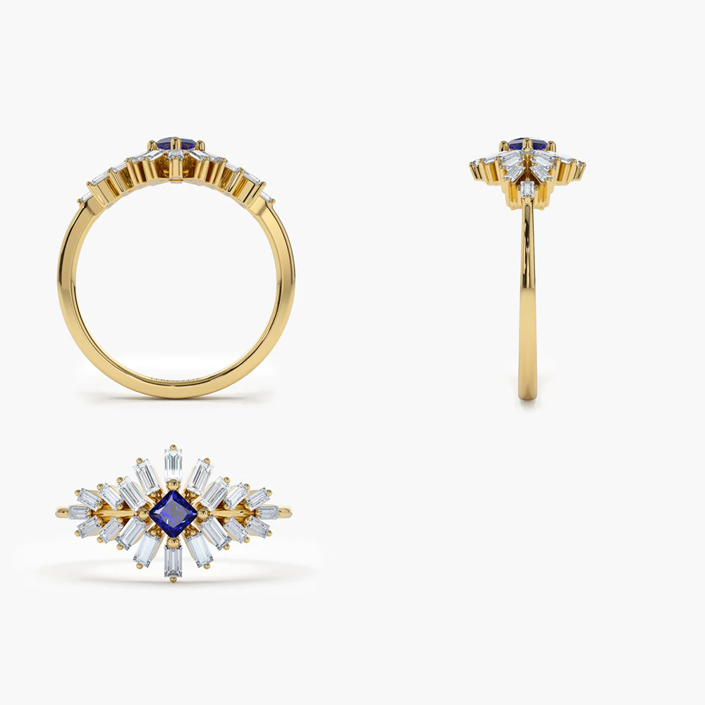 I’m very happy with my purchase. The Baguette Diamond Silver Ring with Square Sapphire is stylish and well-made.