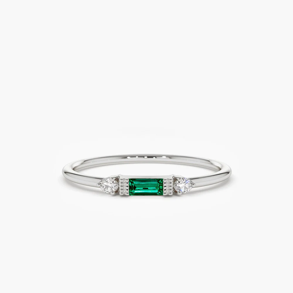 The Baguette Lab Emerald with Diamond Silver Ring is a great addition to my jewelry collection. I’m very happy with my purchase.