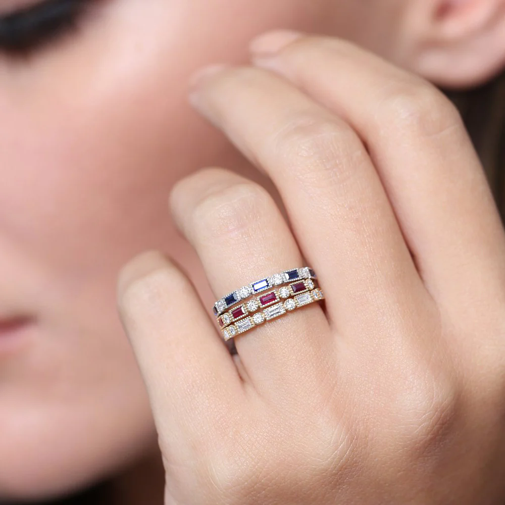 Finished with a thick, durable layer of 14K gold or rose gold plating, the ring offers a lasting, luxurious shine. Thoughtfully designed to be nickel-free and hypoallergenic, it ensures a comfortable and safe wear, perfect for sensitive skin. Whether you’re dressing up for a special event or adding a vibrant accent to your everyday attire, this baguette ruby and diamond ring is the perfect balance of color, sparkle, and sophistication.
