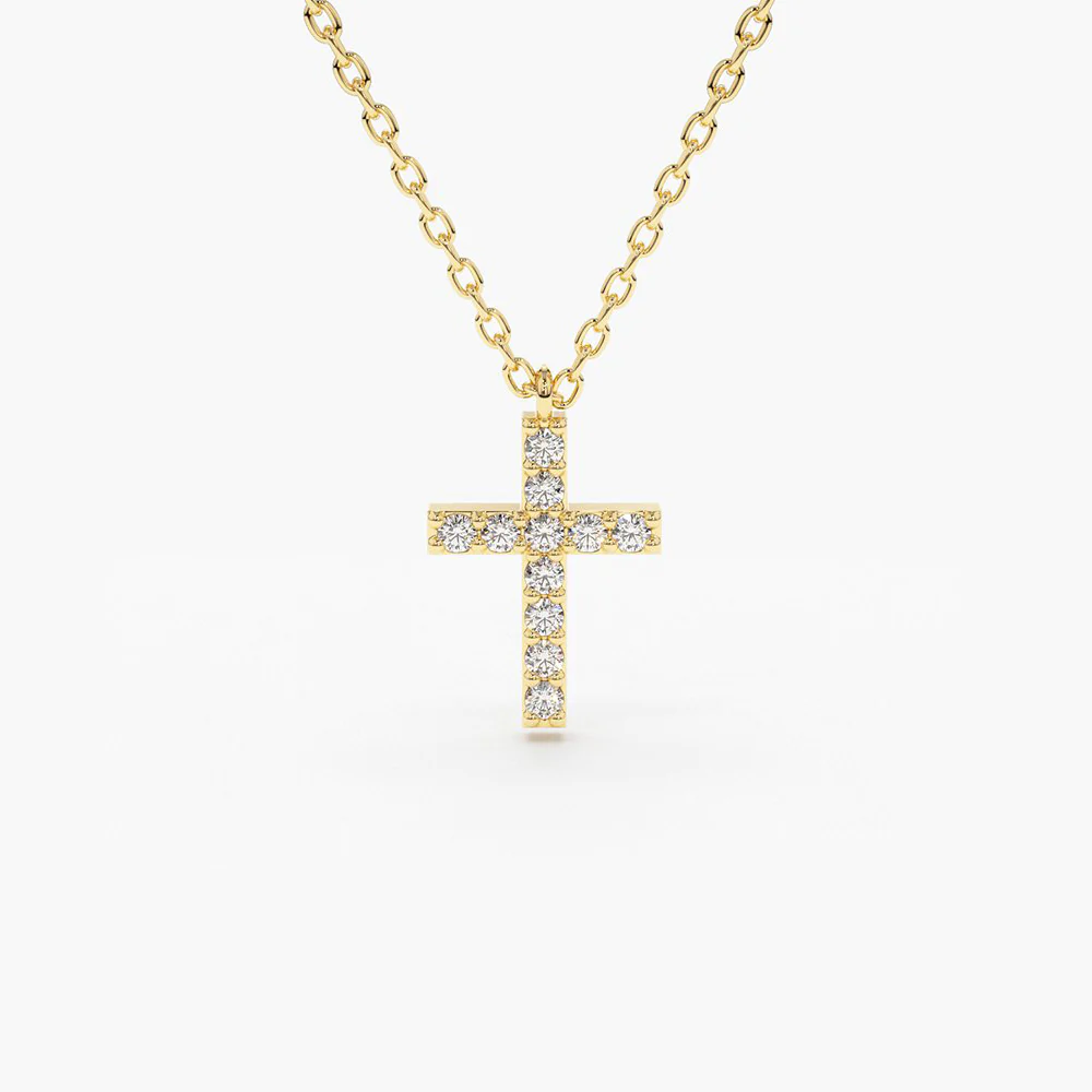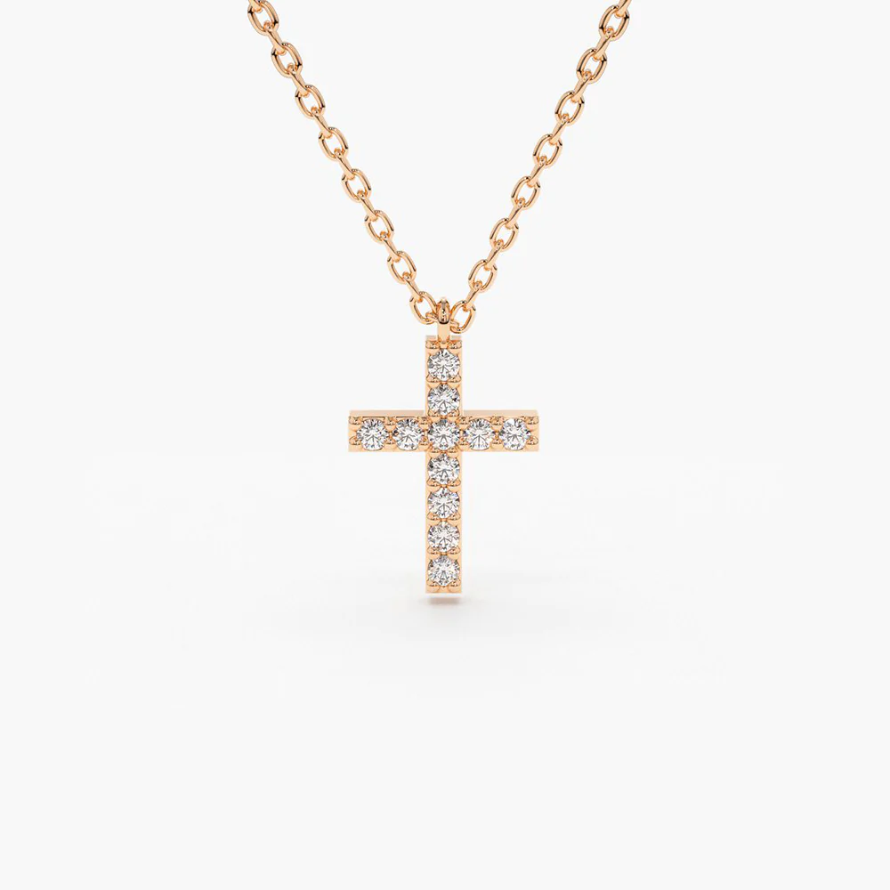 925 silver cross necklace with CZ accents, finished in 14K gold or rose gold. Hypoallergenic, nickel-free, and rich in grace and sparkle.