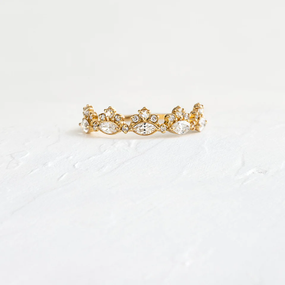 The openwork detailing gives the ring a light, airy feel, while the thick, durable 14K gold or rose gold plating adds a luxurious finish that’s built to last. Whether worn as a standalone statement or layered with other dainty bands, the Chantilly Ring offers effortless elegance for any occasion.