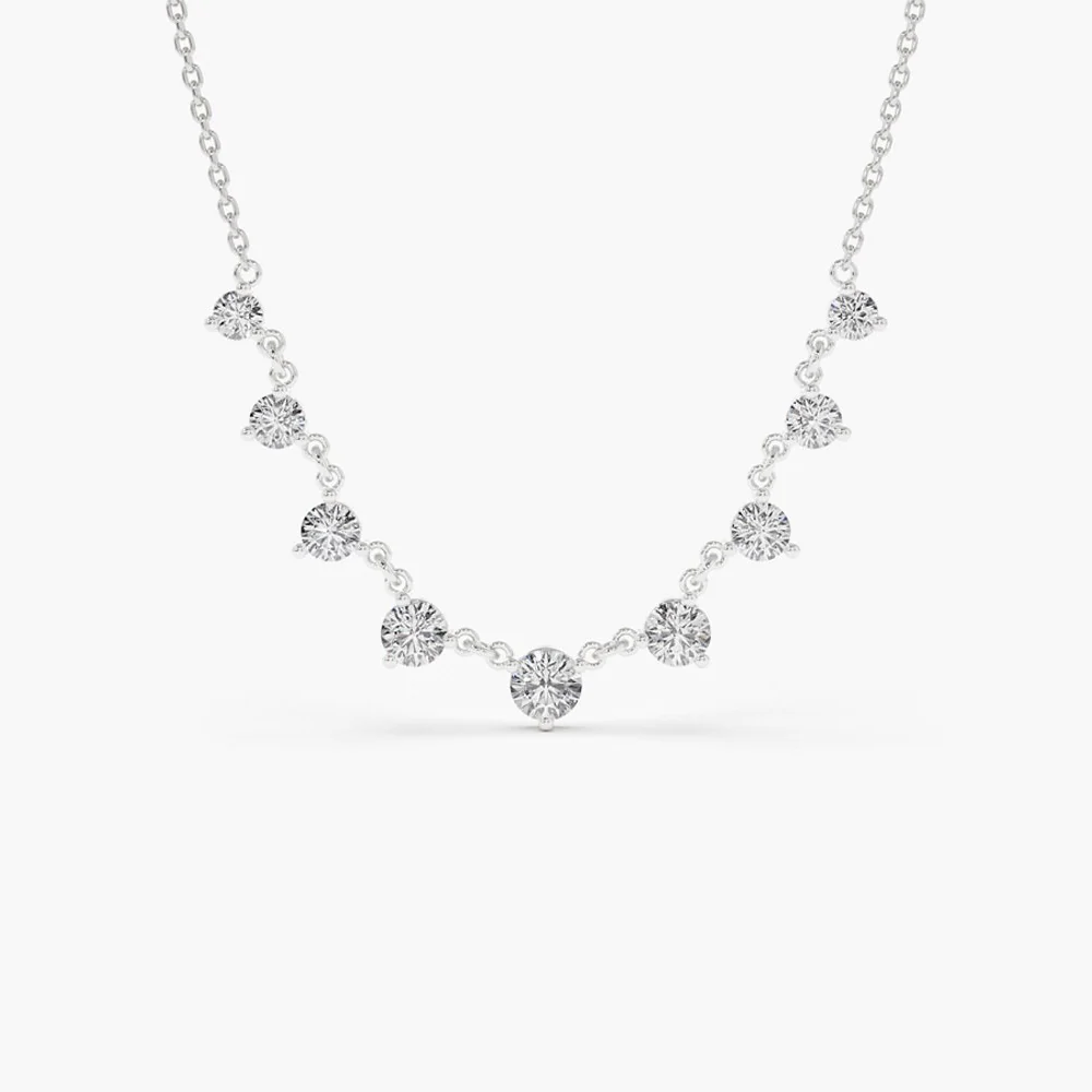 Refined and graceful, the 925 Silver Diamond Graduating Necklace is designed to make a subtle yet lasting impression. Featuring a series of high-grade Cubic Zirconia stones arranged in a graduating size pattern, this necklace mimics the flow of natural light—growing in brilliance toward the center for a beautifully balanced sparkle.