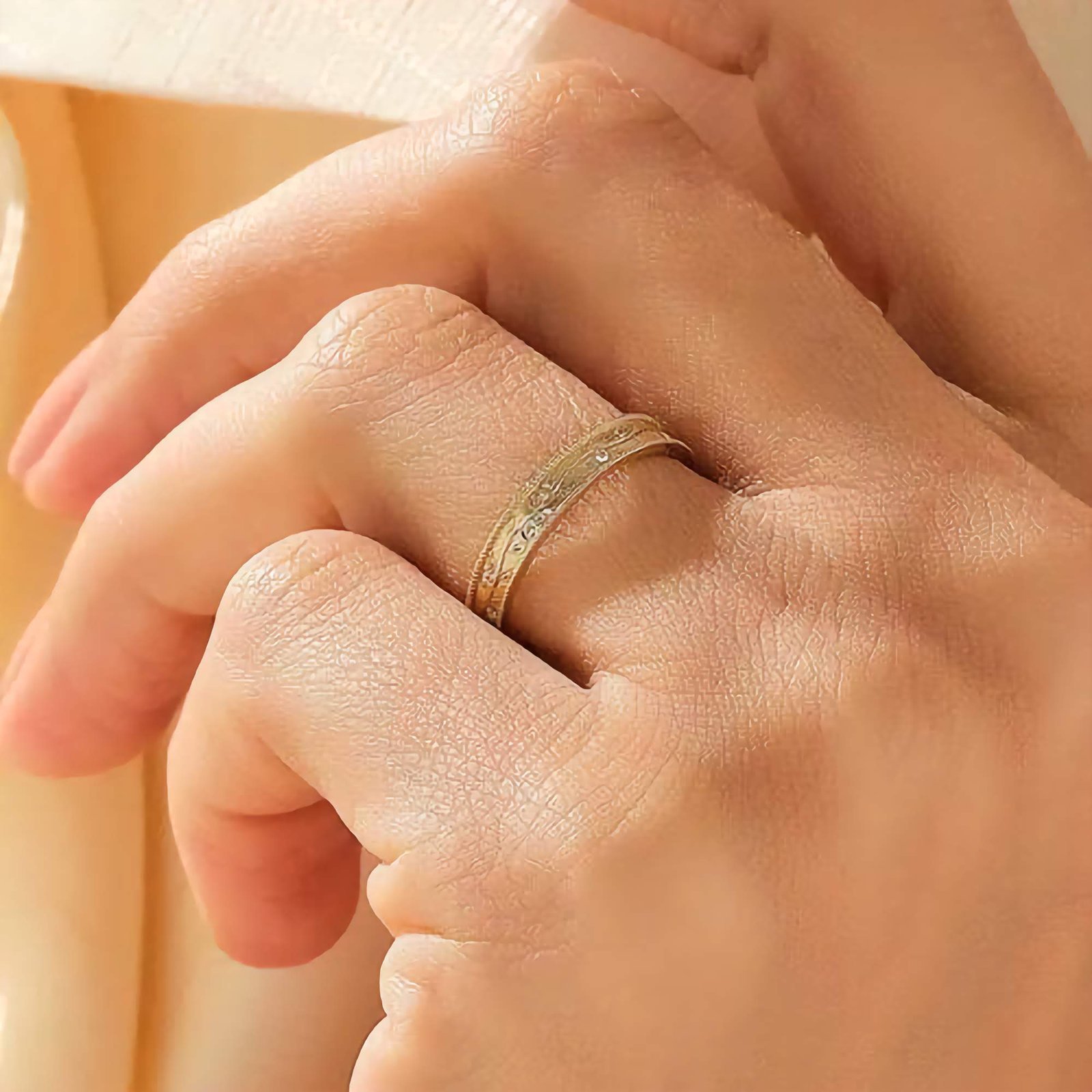 Nickel-free and hypoallergenic, this ring offers a comfortable fit for all skin types. Whether you wear it as a wedding band, anniversary gift, or meaningful everyday accessory, the Diamond Vintage Leaf Band Ring is sure to captivate with its natural charm and vintage appeal.