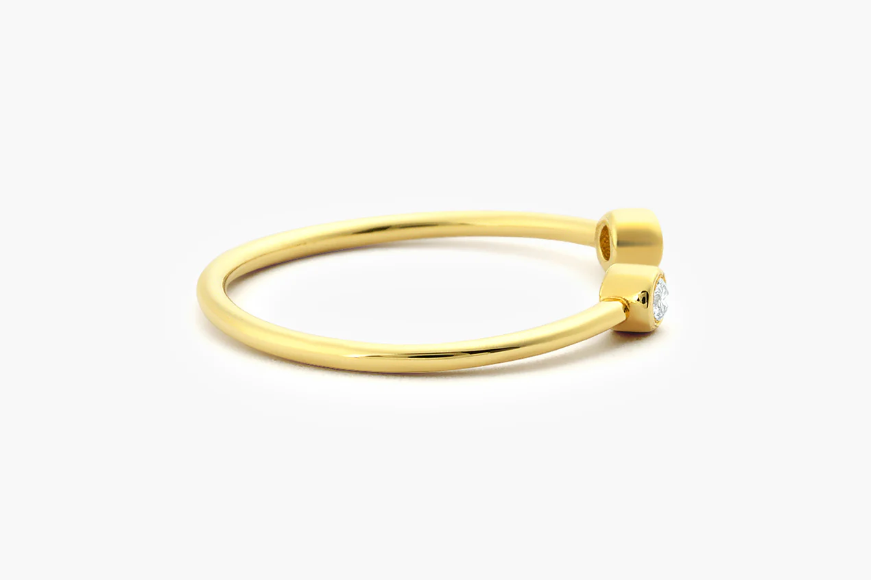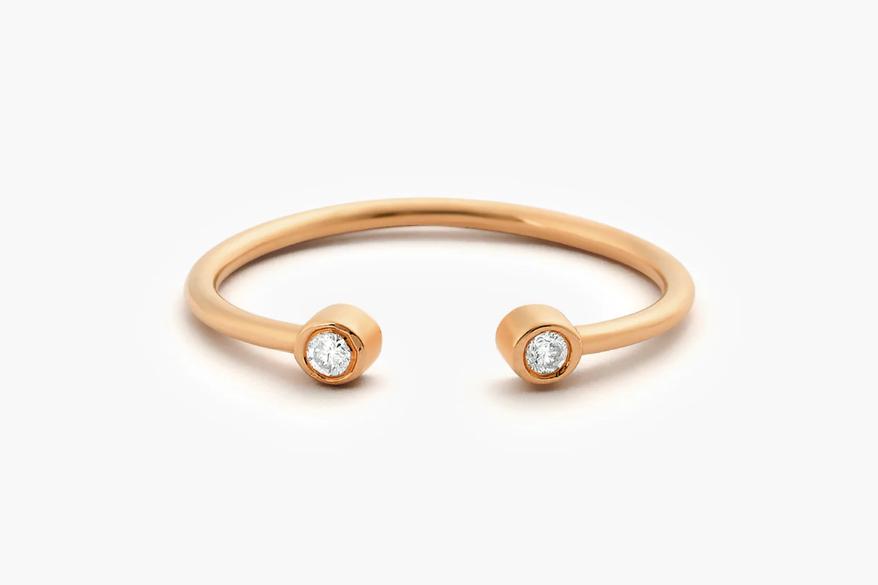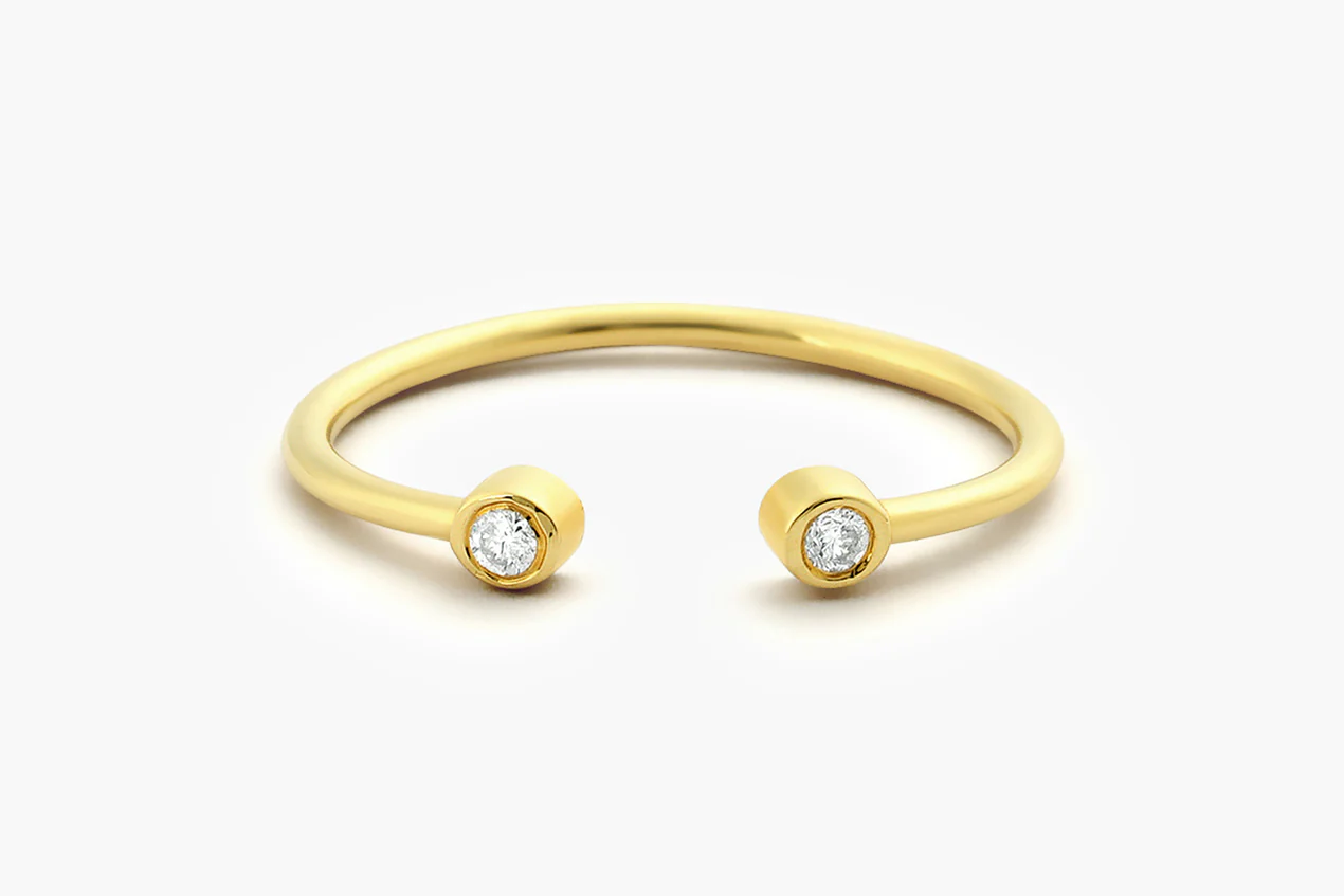 Modern 925 sterling silver double bezel set open ring with dazzling CZ stones and durable 14K gold or rose gold plating. Hypoallergenic and ships in 7–8 business days.