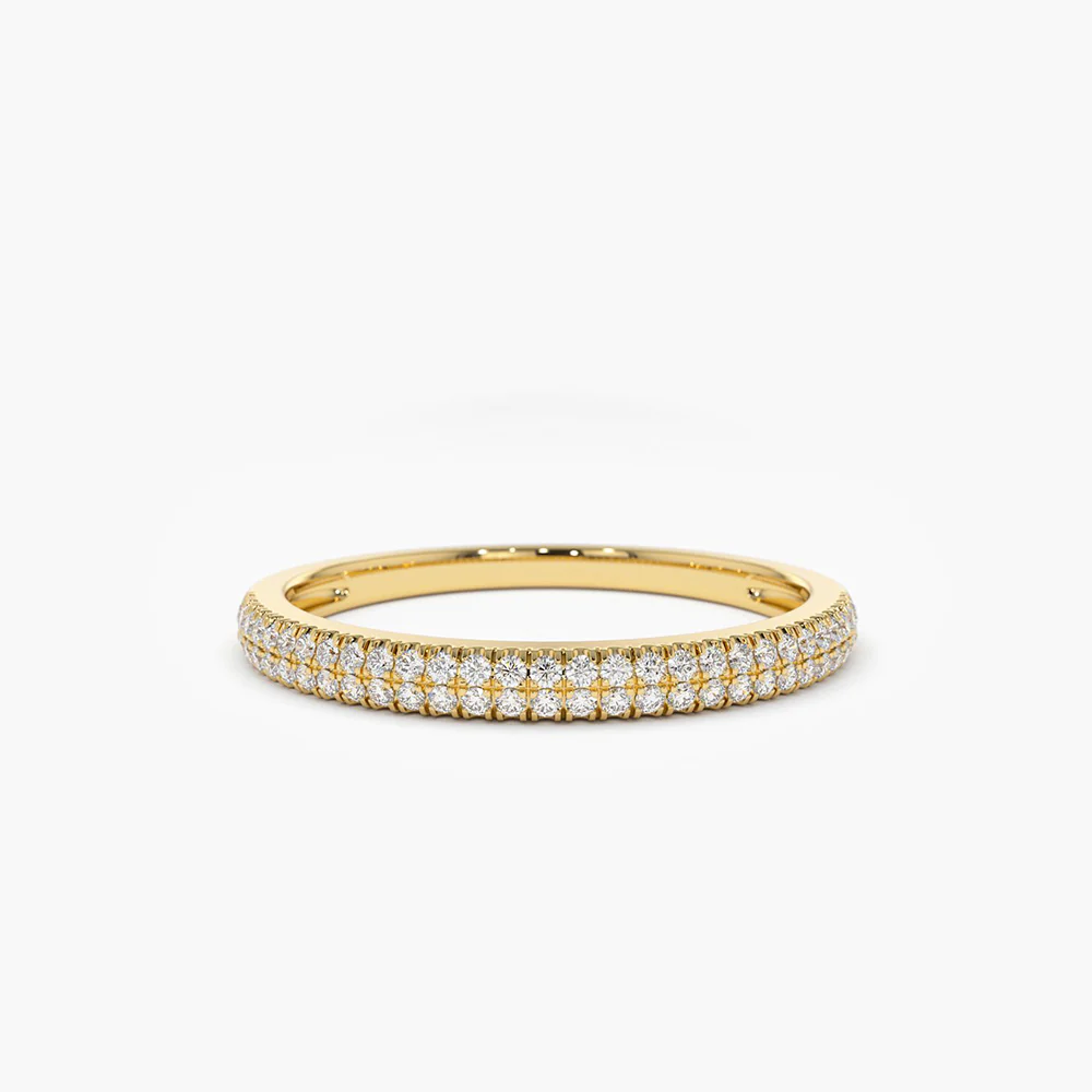 925 silver ring with two rows of diamond-like cubic zirconia, finished in 14K gold or rose gold plating. Hypoallergenic, elegant, and everyday-ready.
