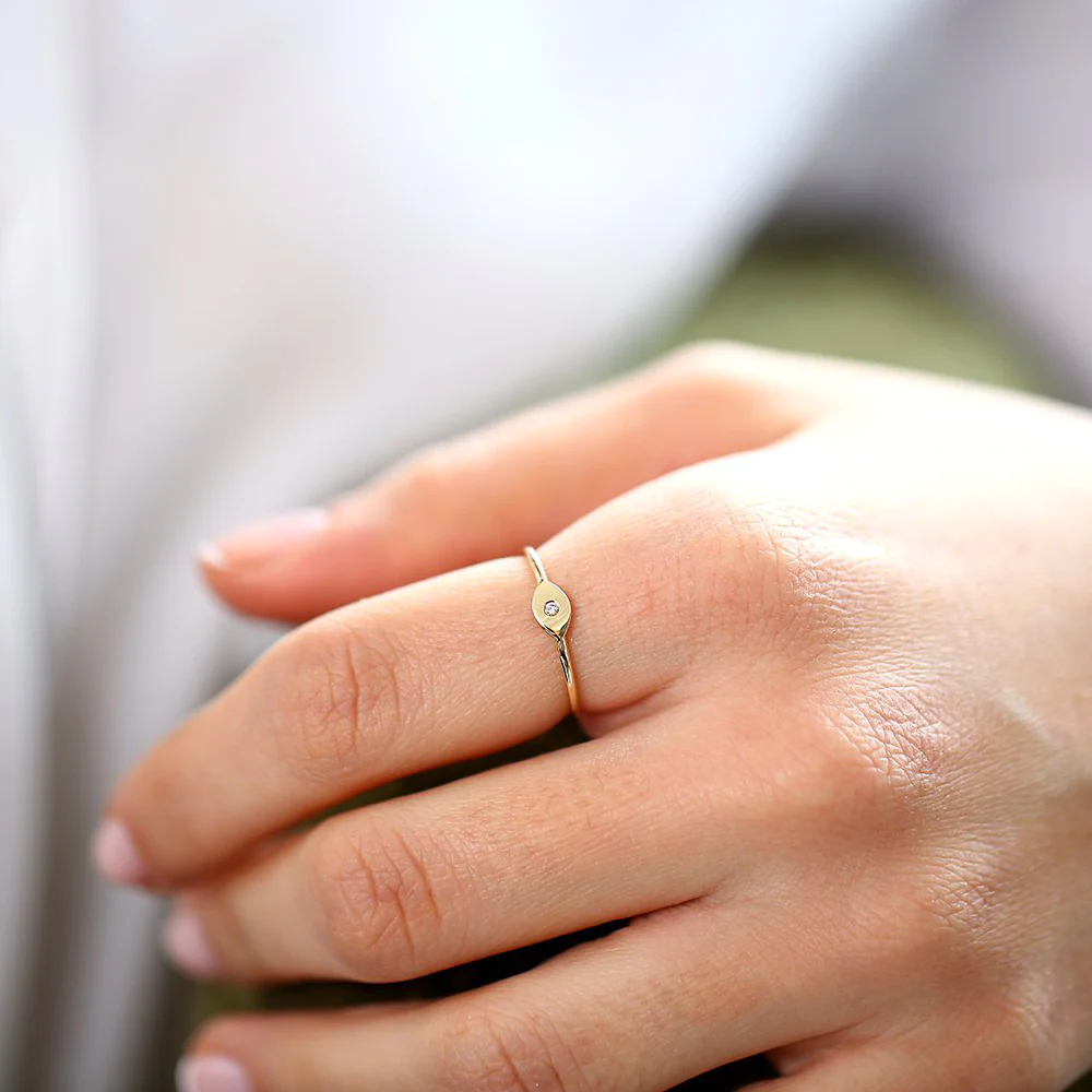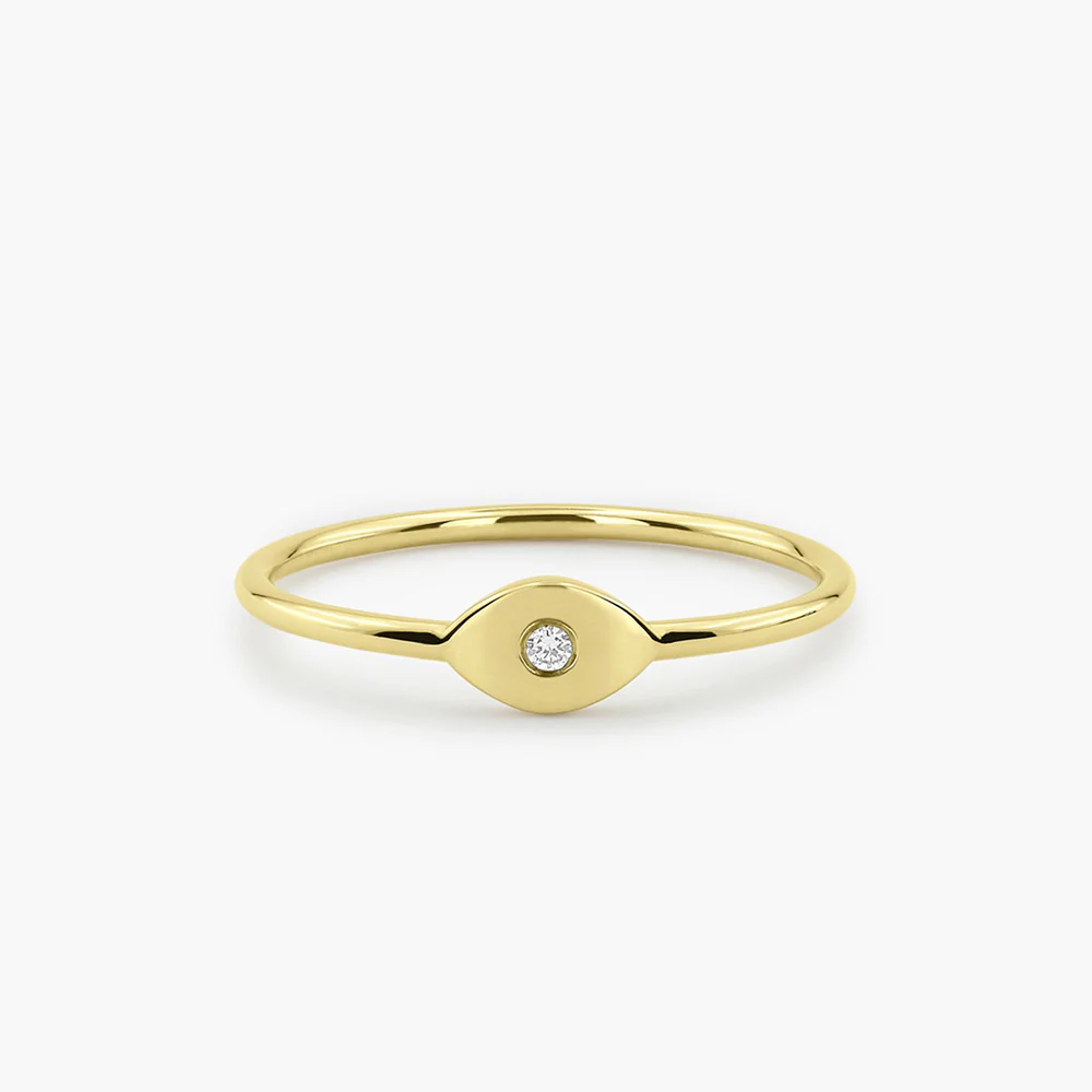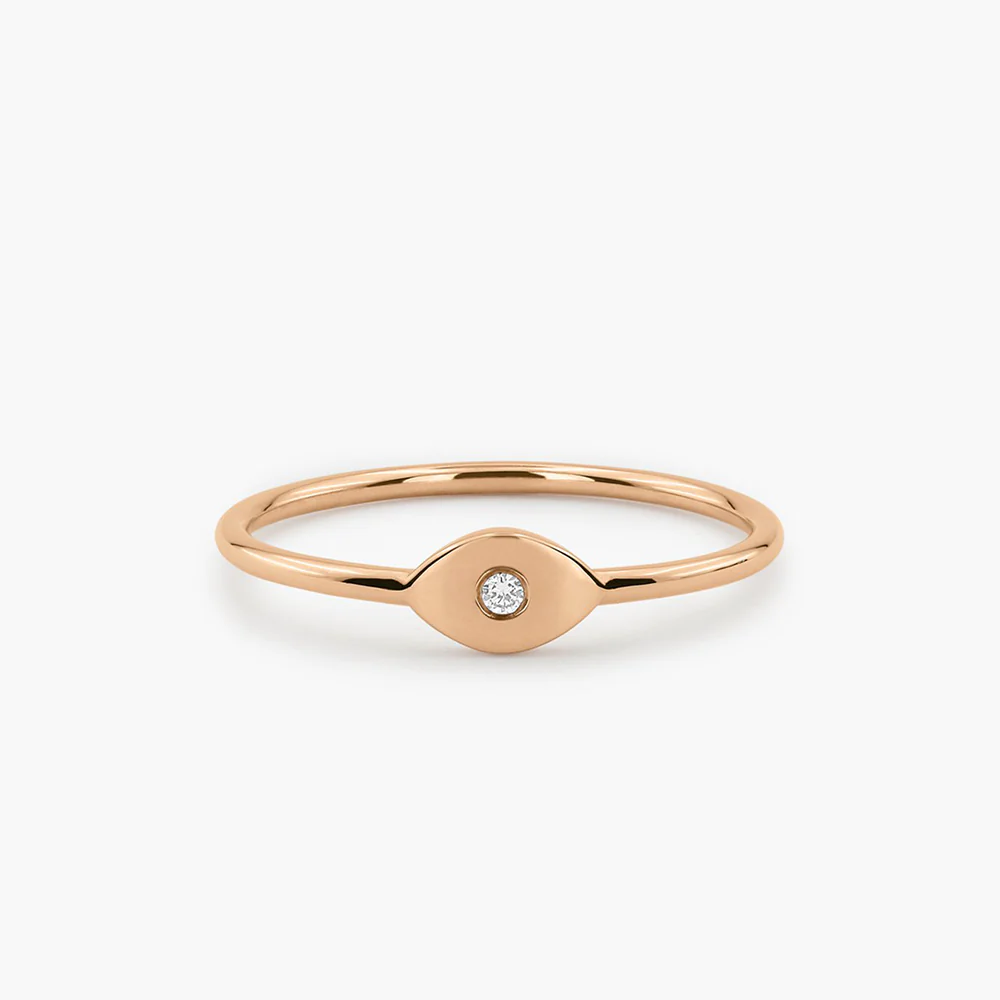 925 silver evil eye ring with sparkling diamond-like zirconia, gold or rose gold plated. Hypoallergenic and designed for daily protection and style.