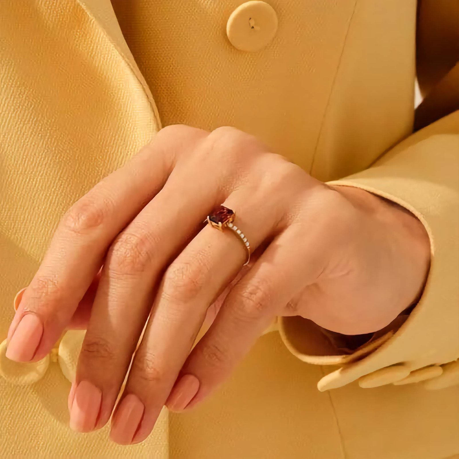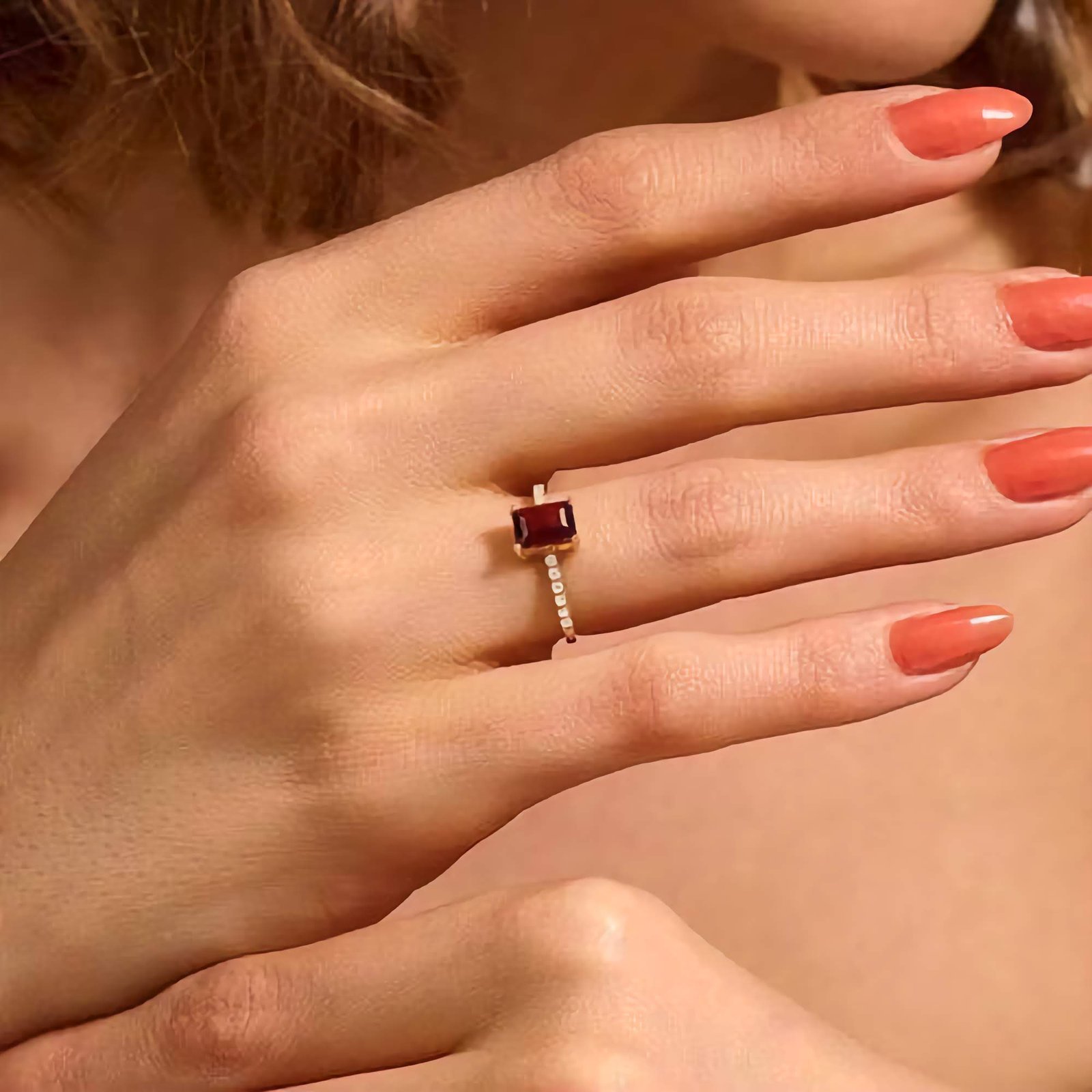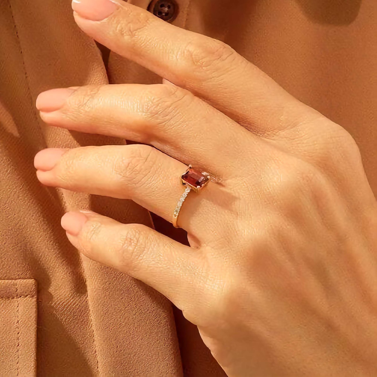Designed to be nickel-free and hypoallergenic, this ring ensures all-day comfort, even for those with sensitive skin. Whether chosen as a promise ring, an engagement ring with a twist, or a beautiful self-love statement, the Garnet Solitaire Ring captures timeless beauty with a vibrant heart.