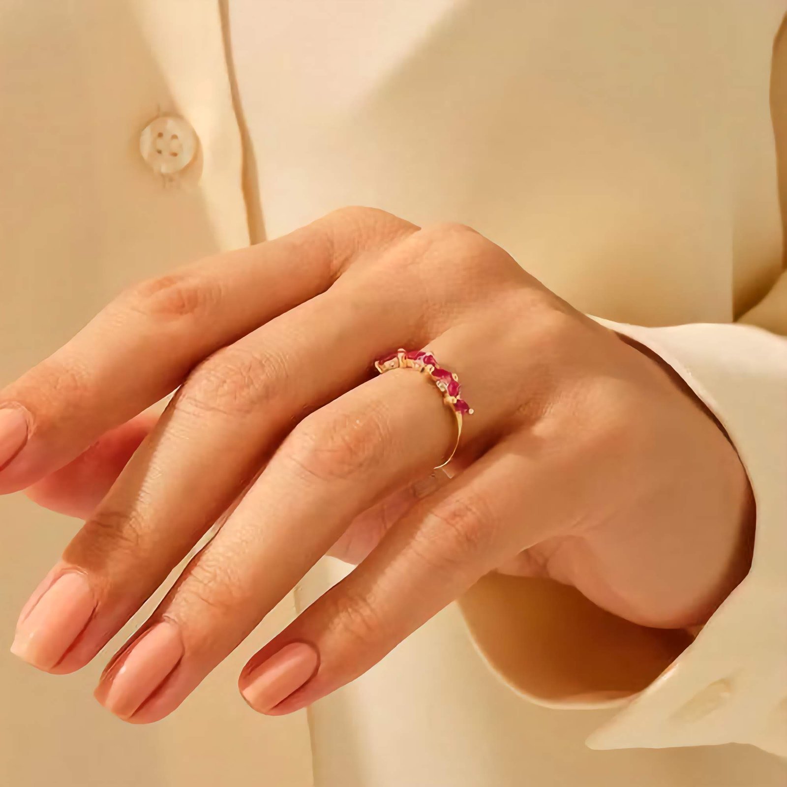 Inspired by vintage romance and modern minimalism, the ring is available in thick, durable 14K Gold or Rose Gold plating — both offering a warm, luxurious glow that resists tarnishing and enhances the richness of the ruby red. The elongated marquise shape flatters the finger, making this piece a perfect symbol of love, passion, and elegance.