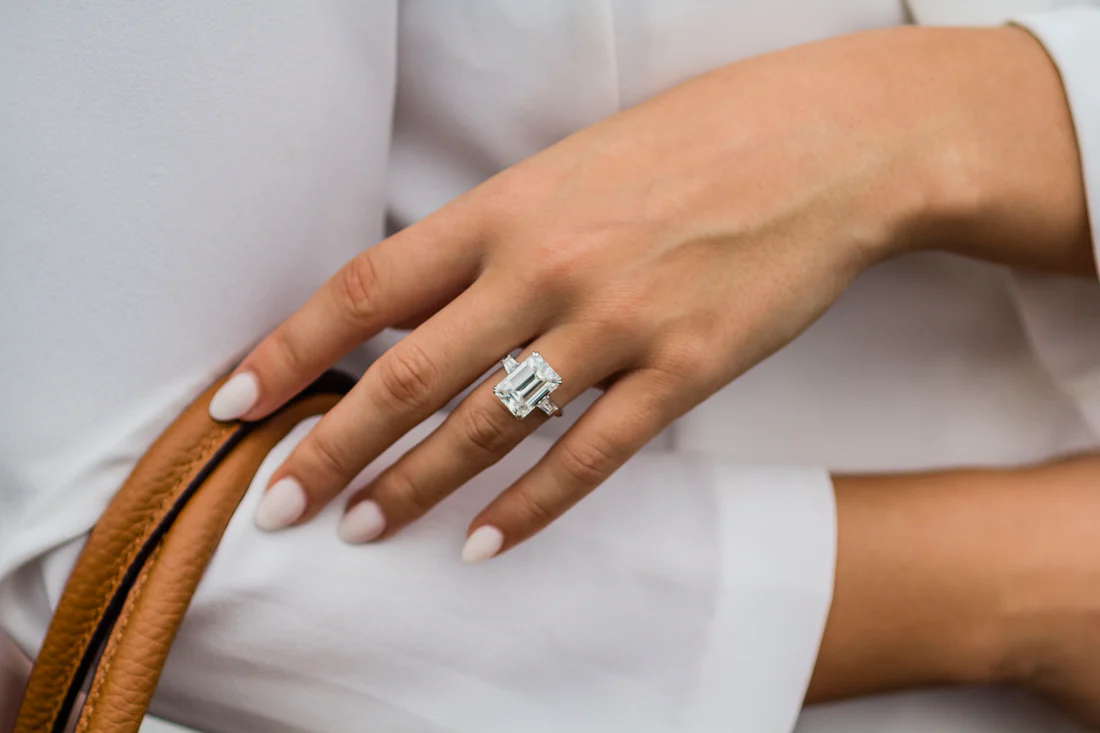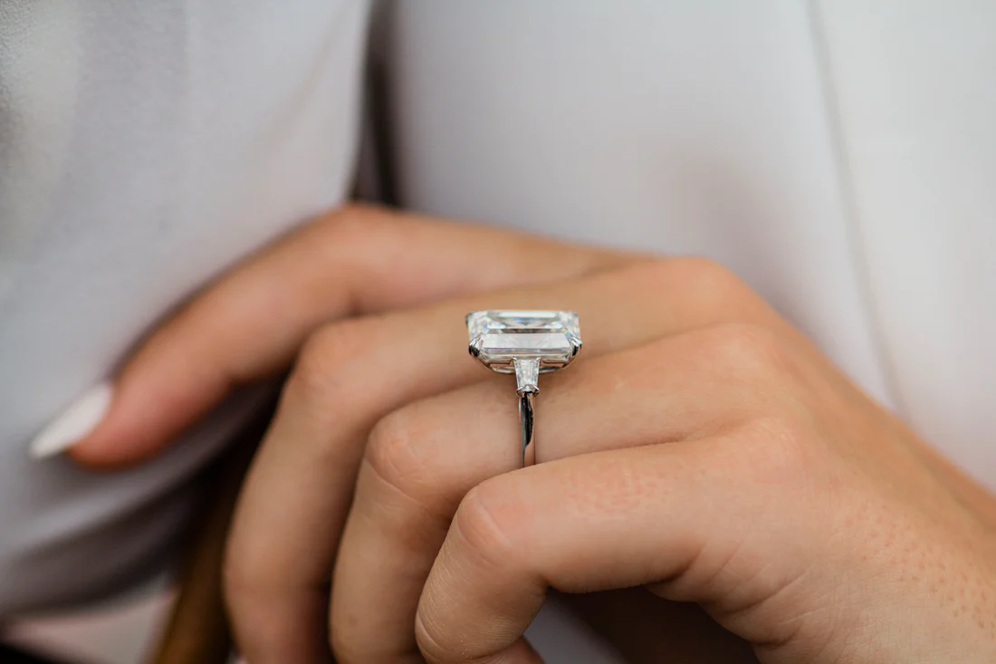 The centerpiece is a striking 4.00 carat emerald-cut cubic zirconia, known for its elongated shape and sophisticated step-cut facets. Its hall-of-mirrors effect radiates with clarity and grace, offering a refined sparkle that’s both bold and timeless. Perfect for those who love clean lines and classic glamour.