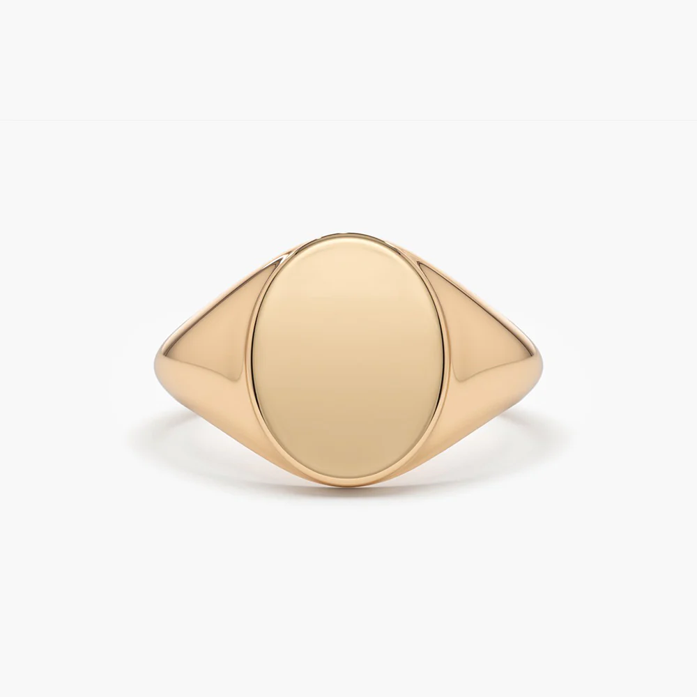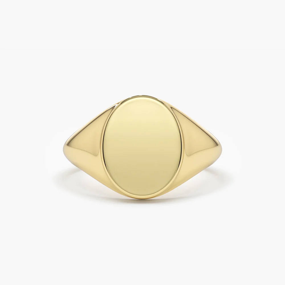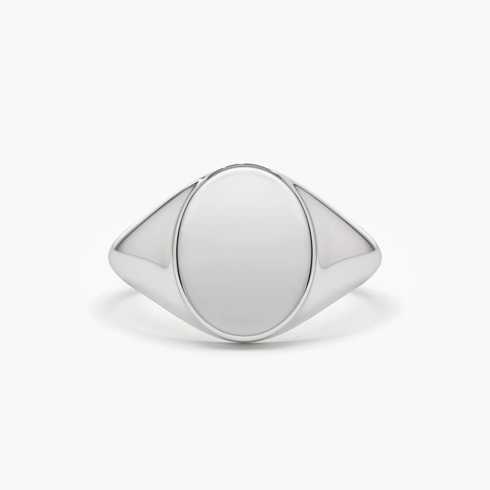 The sleek oval face offers a clean, minimalist canvas—ideal for making a subtle statement or adding personal engravings. Accented with high-grade cubic zirconia stones that mimic the brilliance of real diamonds, this signet ring brings a touch of sparkle without overpowering its understated design. The result is a bold yet graceful piece that speaks volumes with simplicity.