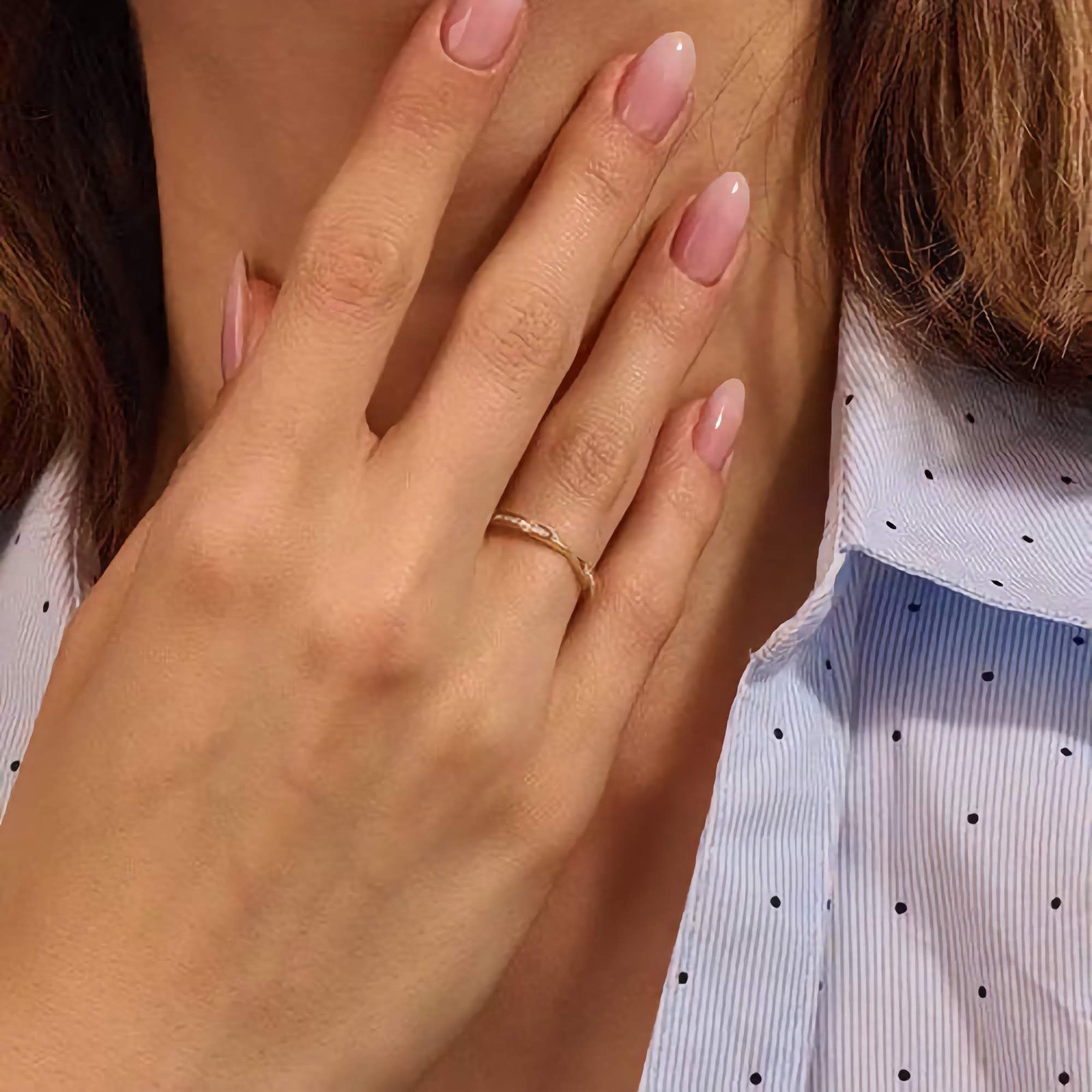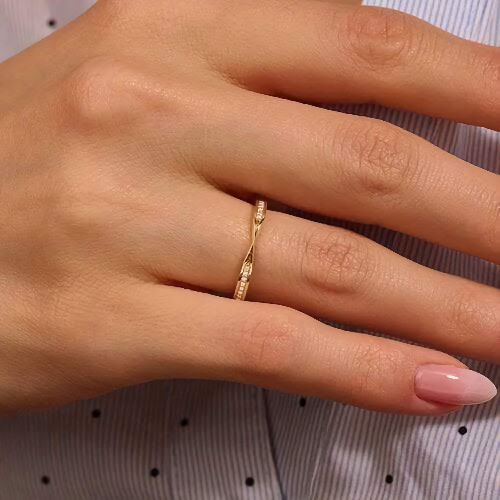 Nickel-free and hypoallergenic, it offers a comfortable, skin-safe fit for everyday wear. Whether worn solo or paired with an engagement ring, the Pavé Diamond Pinched Wedding Ring adds grace and meaning to every moment.