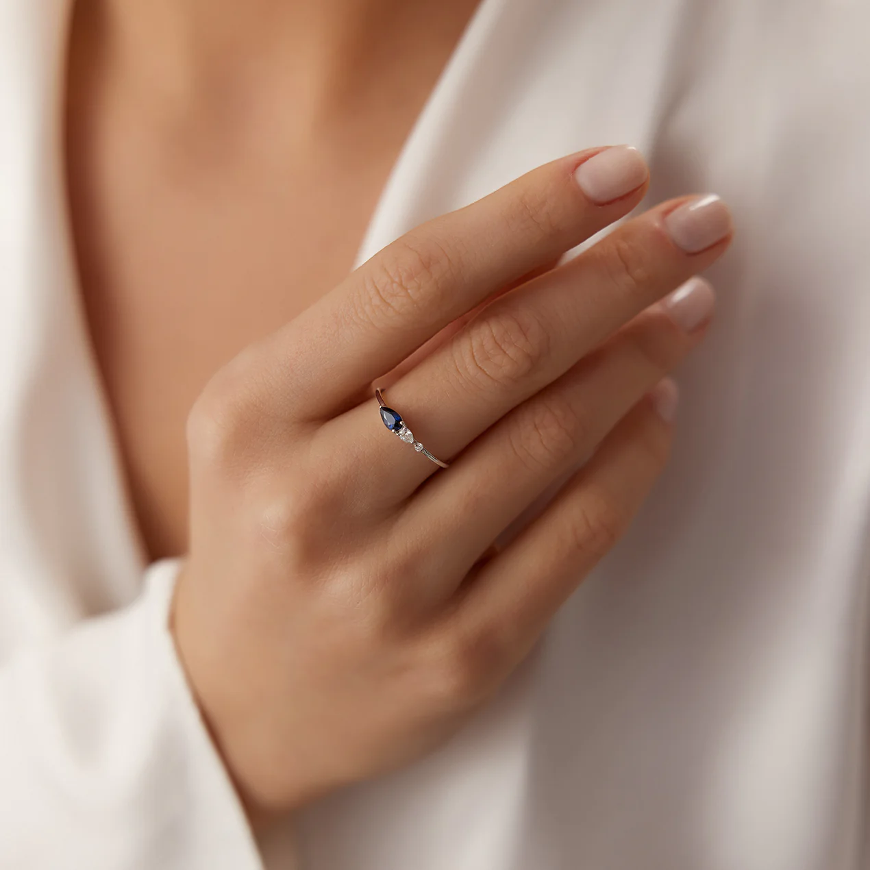925 Silver Pear Shape Diamond Ring