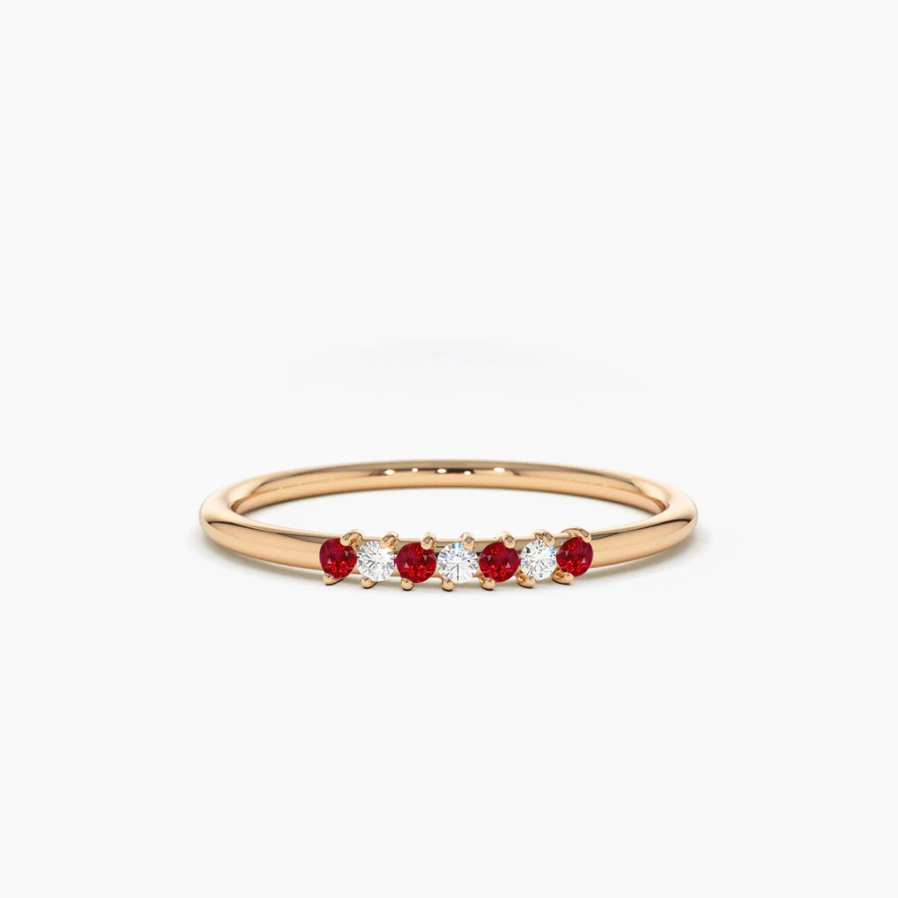 925 sterling silver petite ruby and diamond ring with sparkling cubic zirconia. Finished with thick 14K gold or rose gold plating. Hypoallergenic. Ships in 7–8 business days.