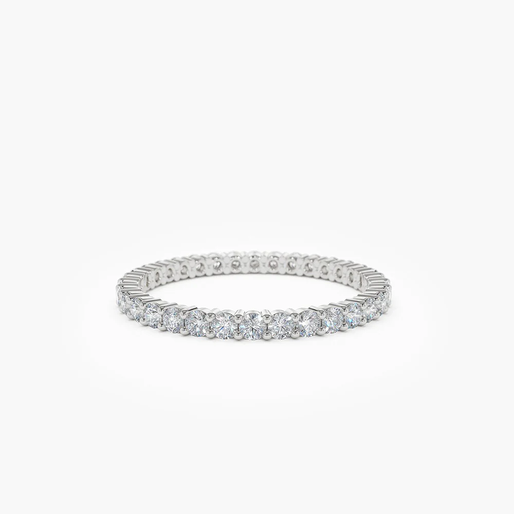 I’m very happy with my purchase. The Prong Setting Diamond Eternity Silver Ring is stylish and well-made.