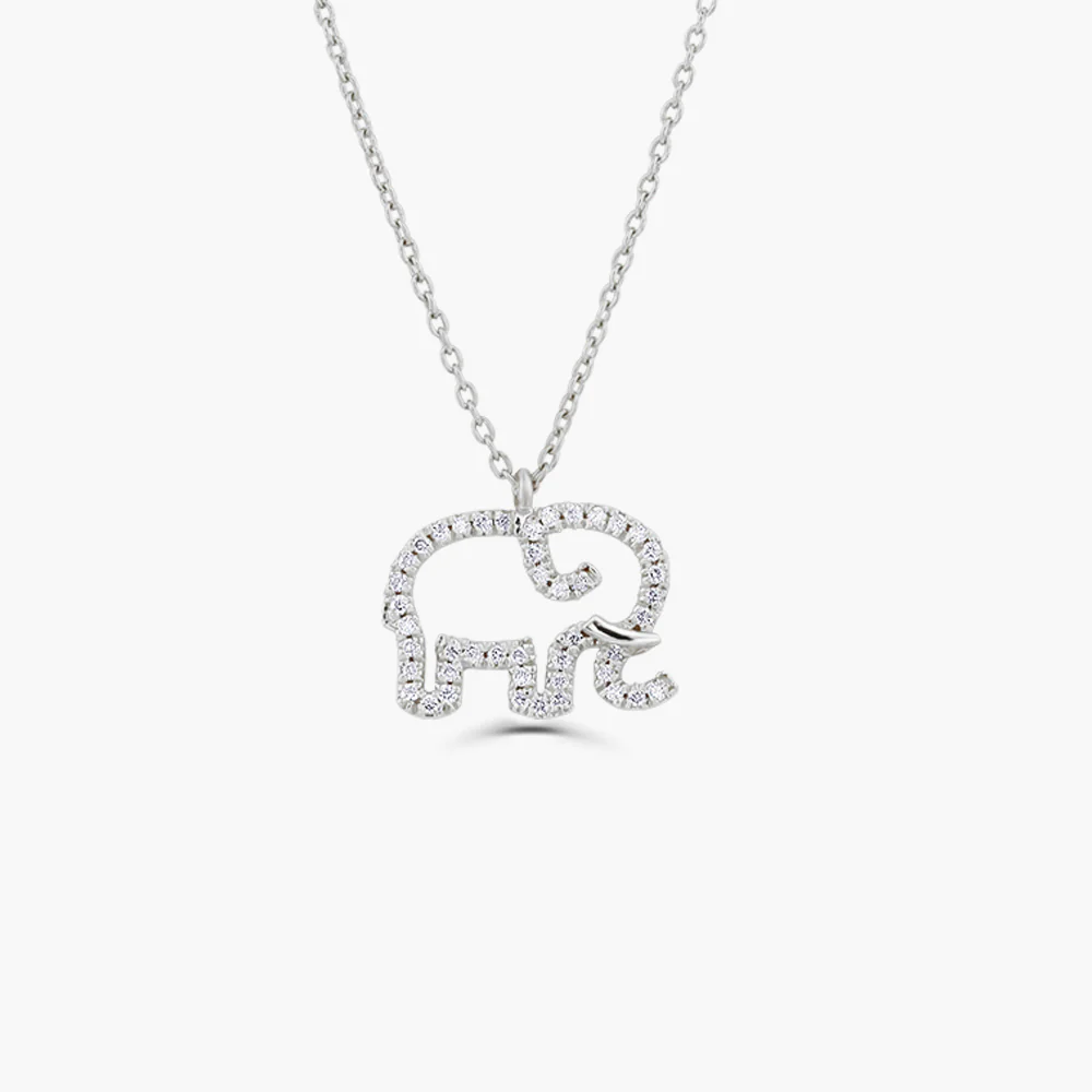 925 Silver Diamond Elephant Charm Necklace