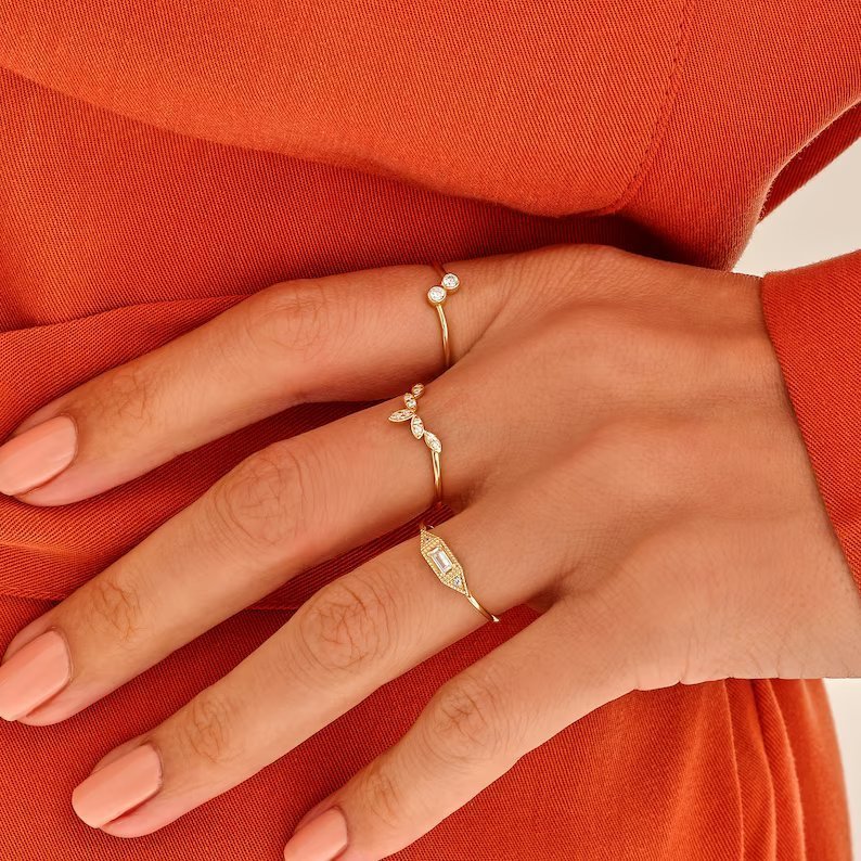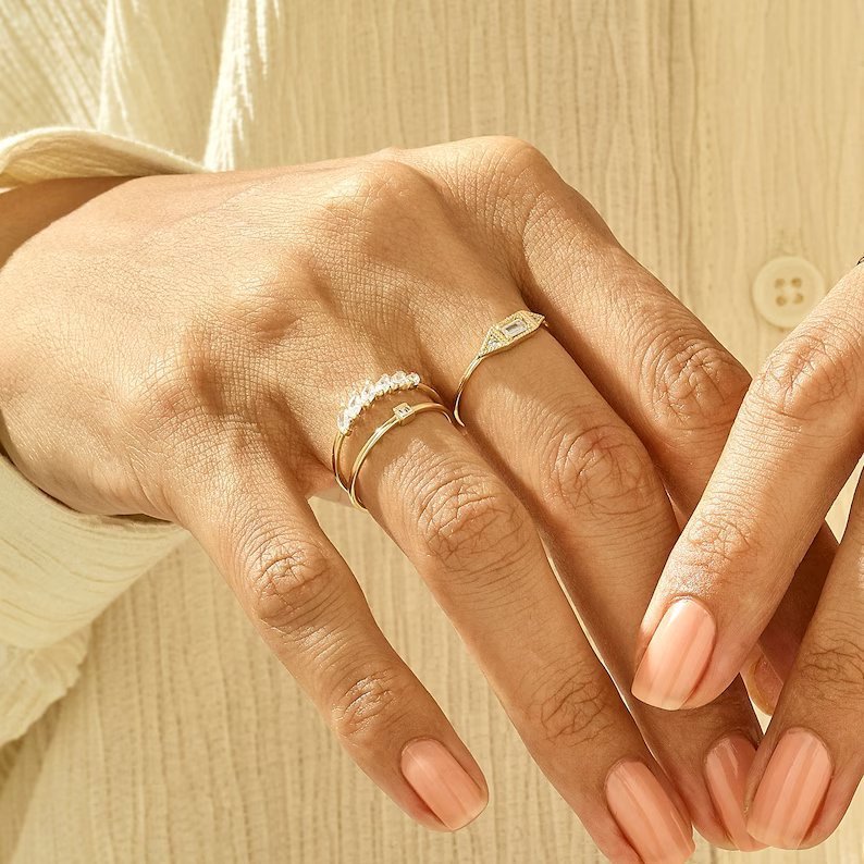 Expertly crafted from high-quality 925 sterling silver, the ring is coated with a thick, durable layer of 14K gold or rose gold plating, ensuring lasting shine and wearability. The baguette stone is cut from the highest-grade CZ, offering a diamond-like brilliance that adds just the right amount of radiance.