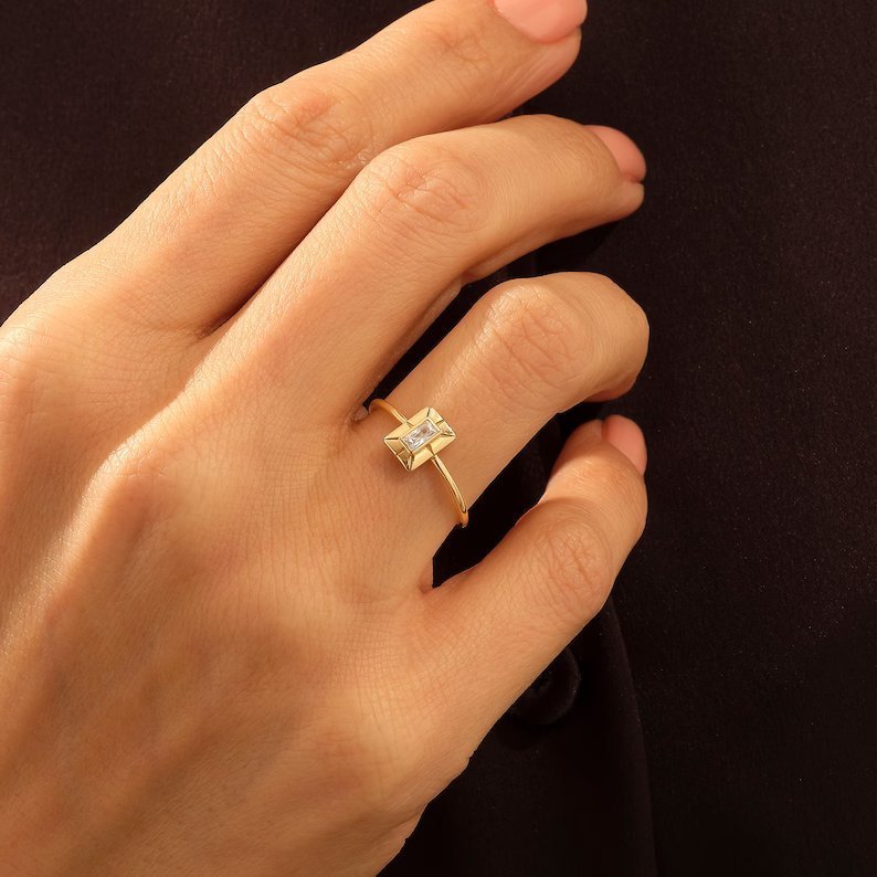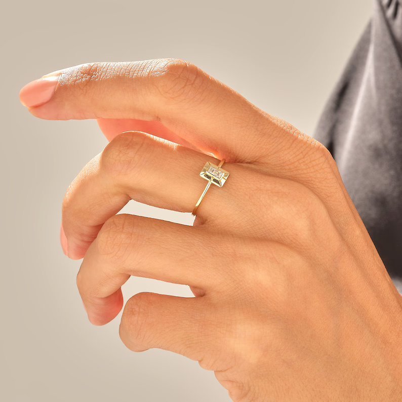 Crafted from high-quality 925 sterling silver, the ring is finished with a thick, durable layer of 14K gold or rose gold plating for long-lasting shine. The baguette-cut CZ stone, made from the highest grade of cubic zirconia, offers a radiant sparkle that mimics the brilliance of real diamonds.