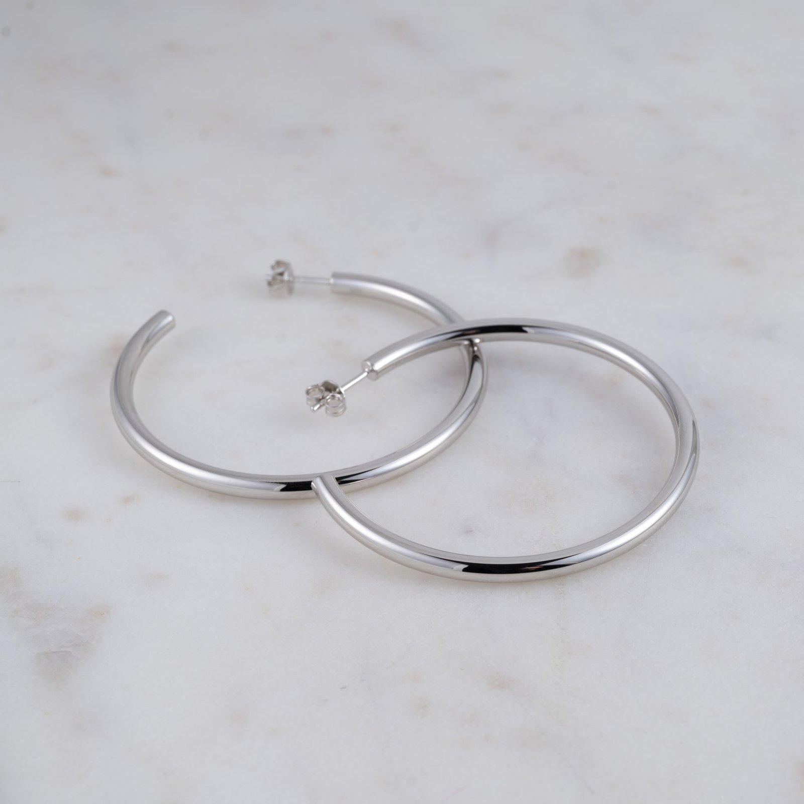 925 Silver large lightweight gold hoops with 14K plating, hypoallergenic, 3.5mm thick, available in 55mm & 62mm. Perfect for all-day wear. Ships in 7–8 days.