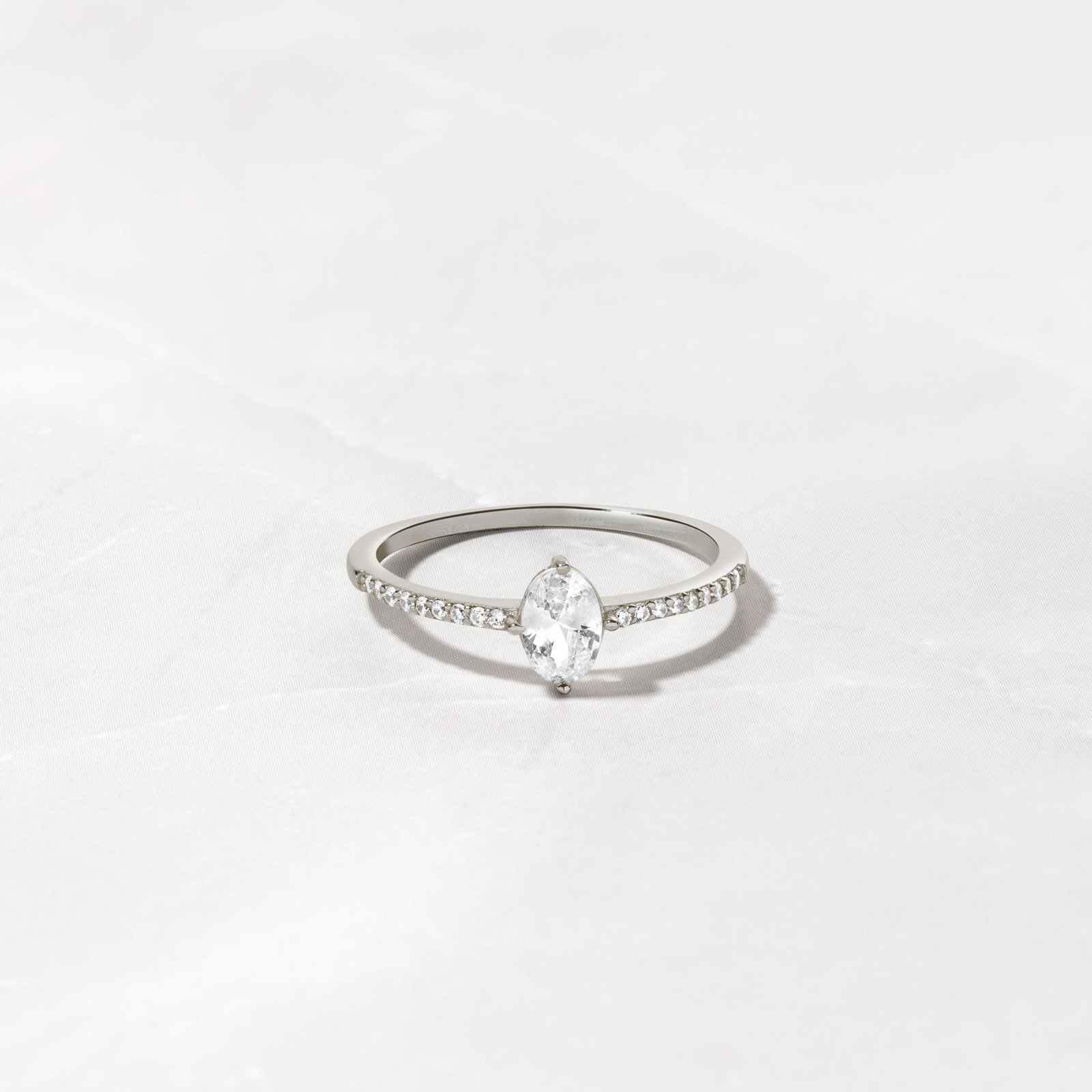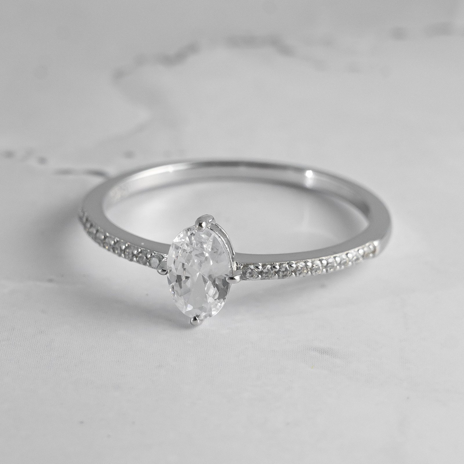 The ring features a 4x6mm oval cubic zirconia stone, chosen for its brilliant sparkle that mimics the beauty of a real diamond. With its minimalist design, this ring can be worn alone for a sophisticated statement or stacked with other pieces for a more personalized look. Available in sizes 4-10, it caters to various preferences and is nickel-free and hypoallergenic, making it perfect for sensitive skin.