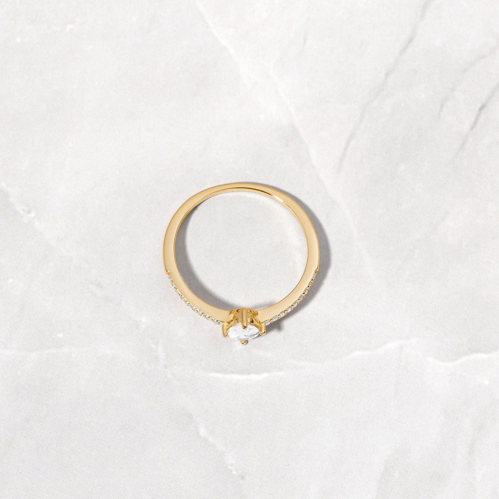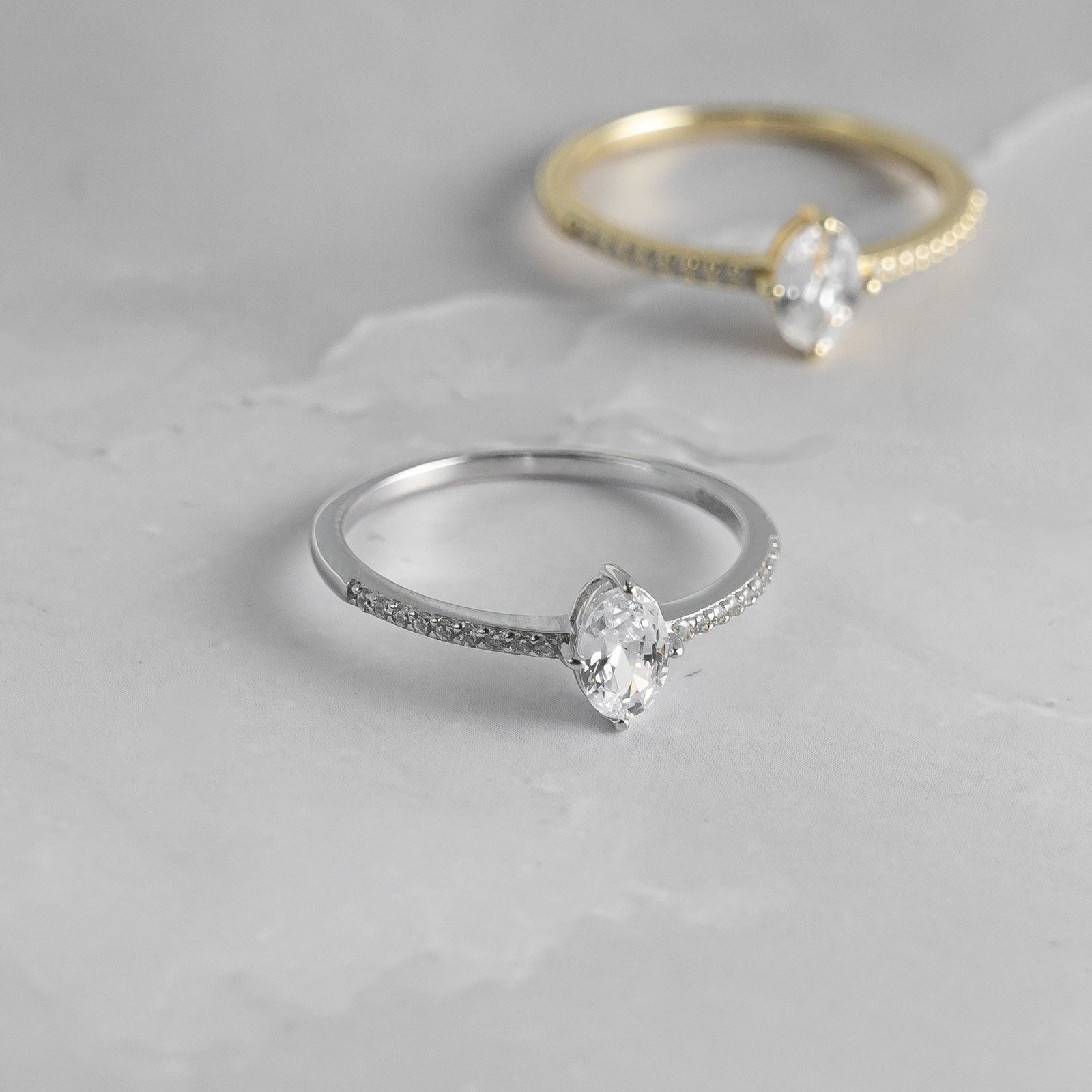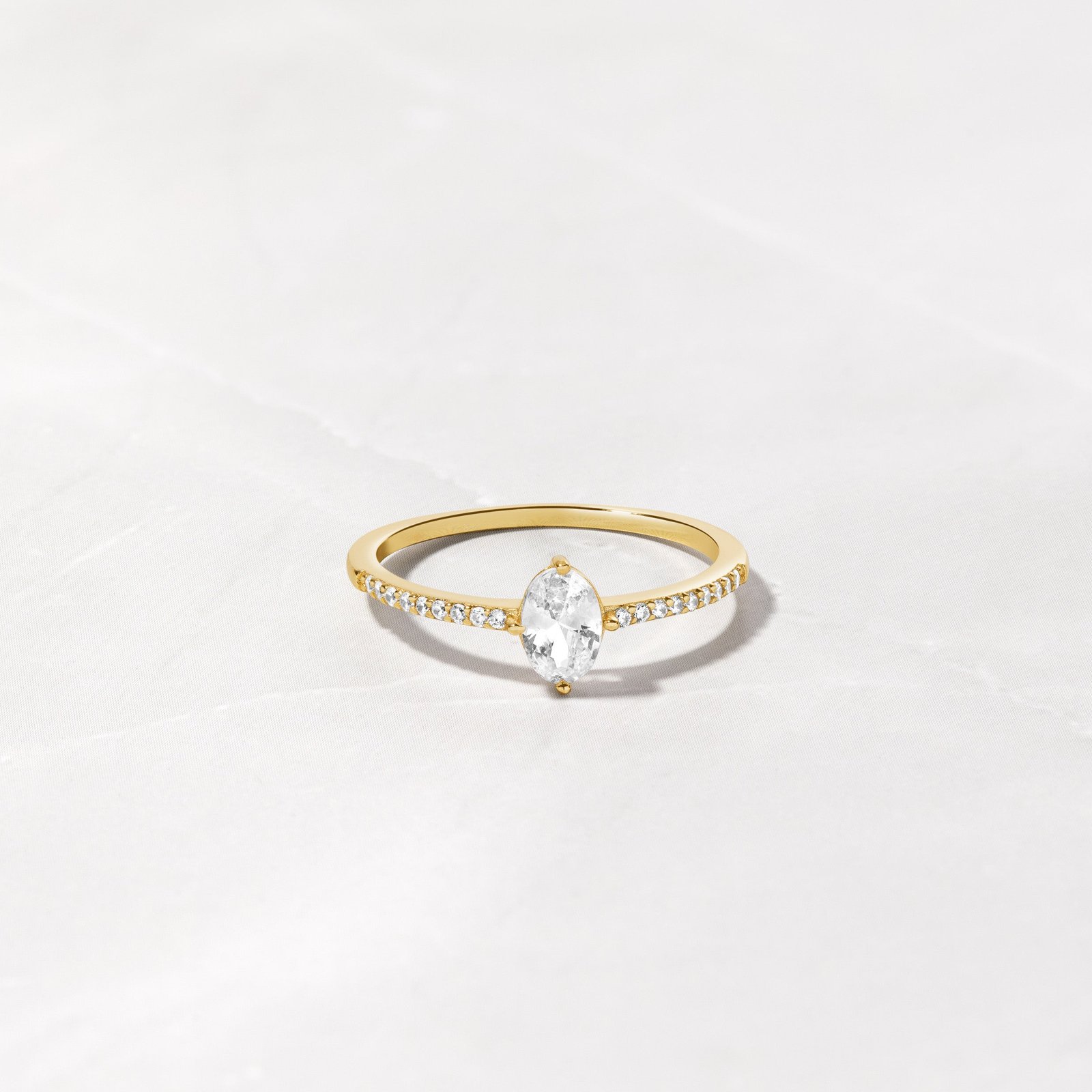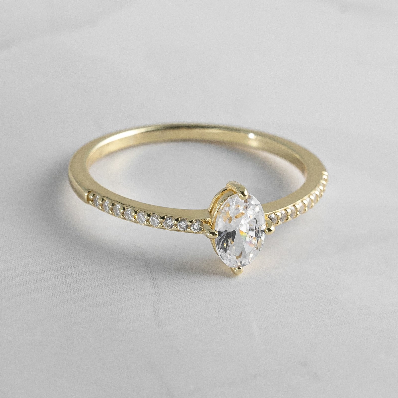 925 Silver Maddy Ring, 14K Gold plating, Nickel-free, Hypoallergenic, Cubic zirconia, Sizes 4-10, Stone size 4x6mm.
